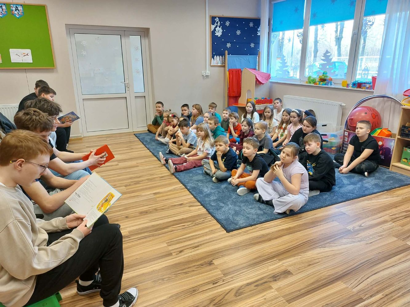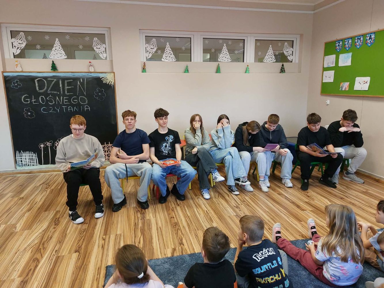 Dzięki zaangażowaniu uczniów klasy VIII młodsi koledzy i koleżanki wzięli udział w Dniu Głośnego Czytania. Odczytane teksty literackie wzbudziły wśród najmłodszej społeczności szkolnej duże zainteresowanie i wiele uśmiechu na twarzy. Oryginalny sposób, w jaki uczniowie zaprezentowali utwory pobudziły wyobraźnię dzieci.