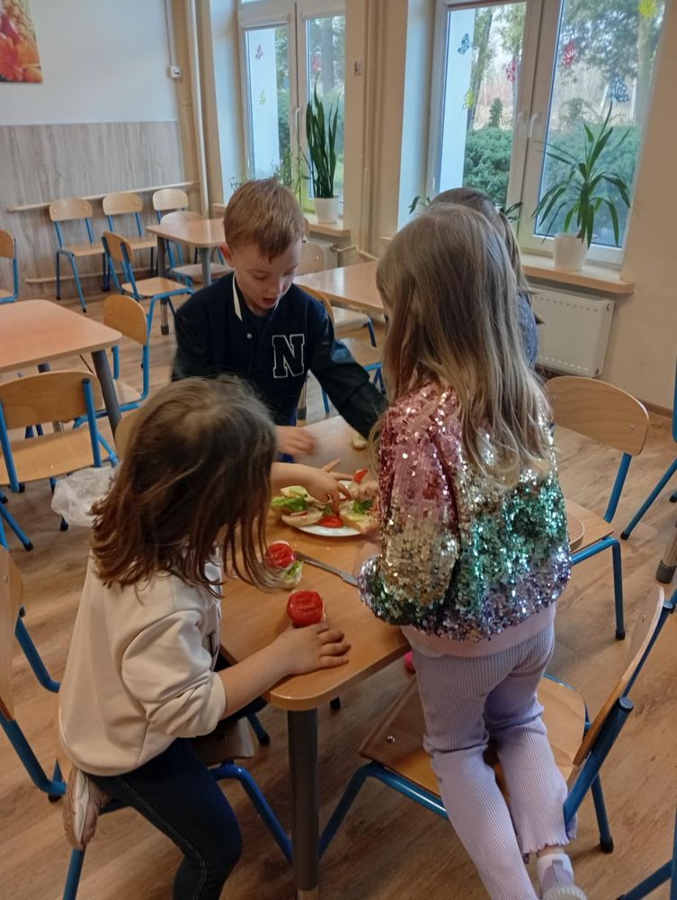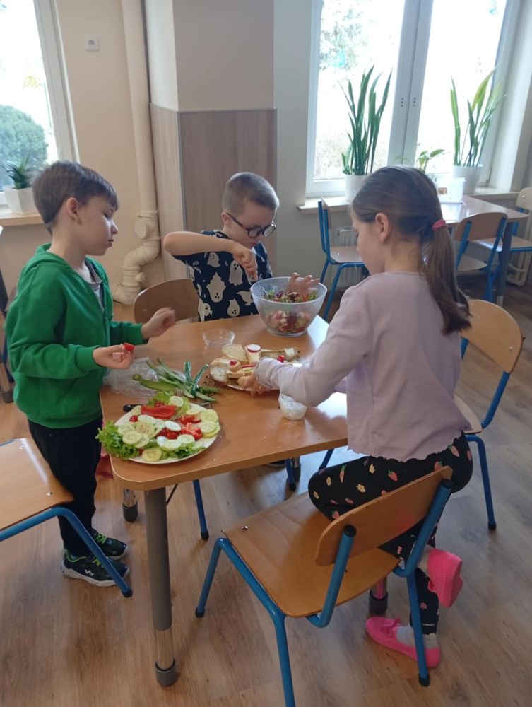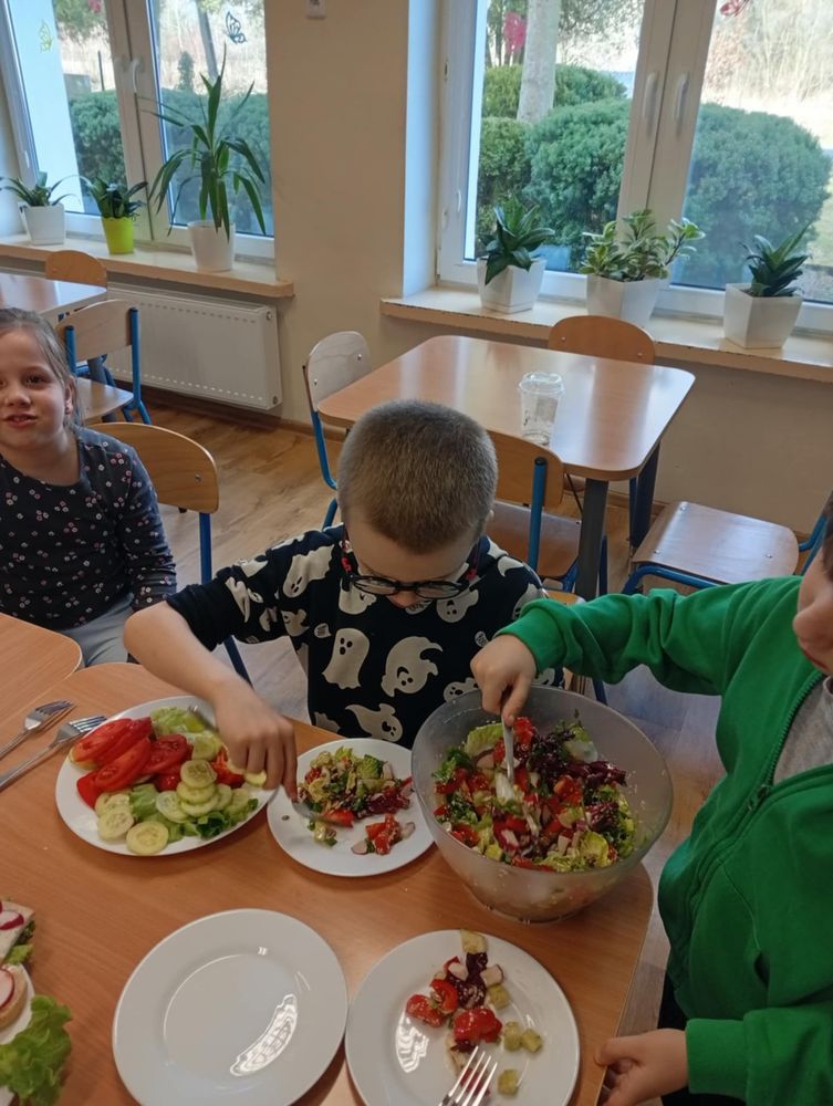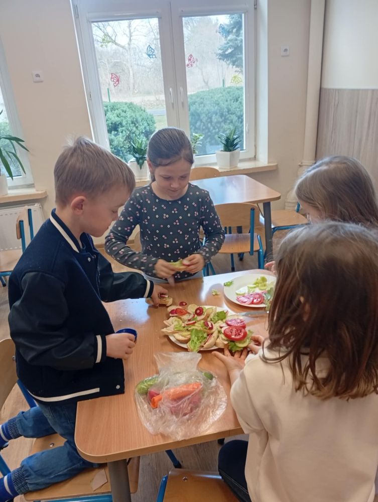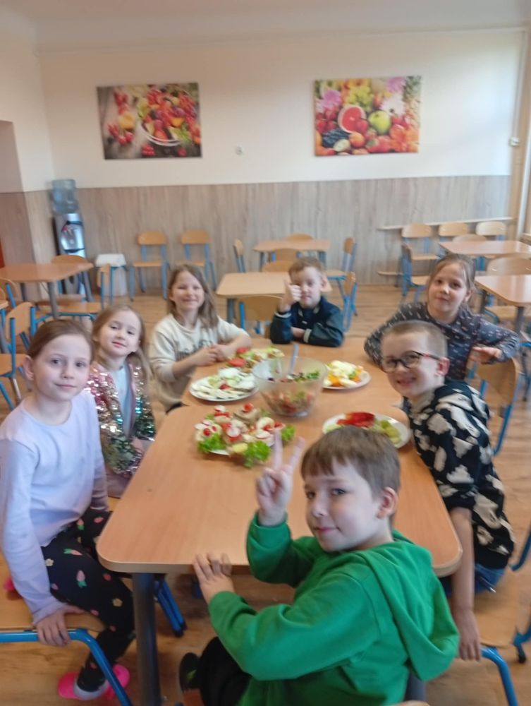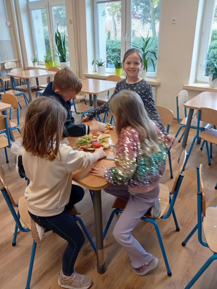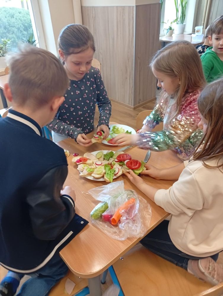 Uczniowie klasy I, w ramach propagowania zdrowego odżywiania, podczas zajęć przygotowali kolorowe i zdrowe śniadanie. Poza wspaniale przygotowanymi daniami było mnóstwo satysfakcji z samodzielnie wykonanej pracy, a także radości podczas wspólnego konsumowania. Oby zdrowe śniadania coraz częściej gościły w śniadaniówkach pierwszoklasistów.