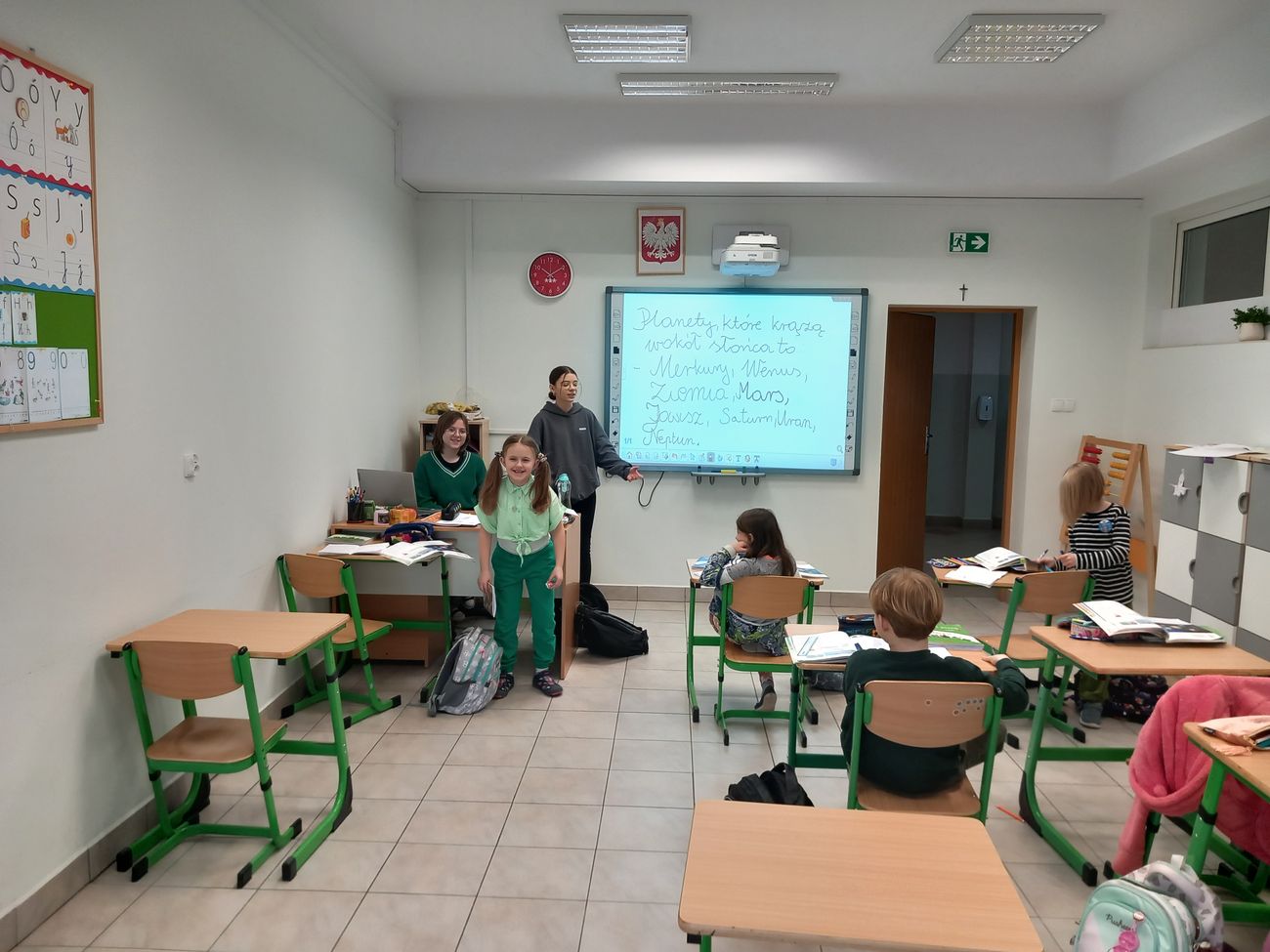 Pierwszy dzień wiosny to czas radosny.W naszej szkole zamiana nastąpiła. Klasa VII i VIII w nauczycieli się zmieniła. Dzieci młodsze zaskoczone, ale przez starszych kolegów świetnie wyuczone. Polski,przyroda,historia czy matematyka to dla nich żadna polityka😉 Na dowód zdjęcia mamy i do galerii zapraszamy.