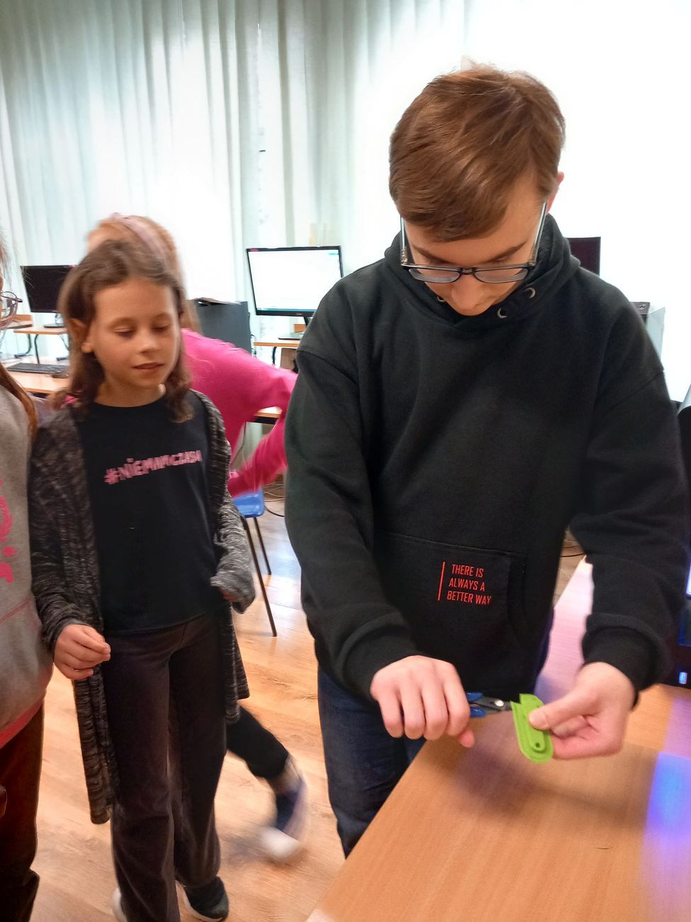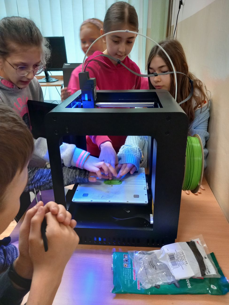 30 marca uczniowie klasy III uczestniczyli w lekcji pokazowej,podczas której starsi koledzy - Łukasz Kościk i Piotr Karaś, przedstawili im możliwości drukarki 3D. Uczniowie podczas zajęć zapoznali się z jej budową, sposobem działania oraz zasadami bezpiecznego korzystania. Możliwość druku przestrzennego bardzo zaciekawiła dzieci, rozbudzajac ich wyobraźnię. Urządzenie zostało zakupione w ramach rządowego programu #laboratoriaprzyszłości.