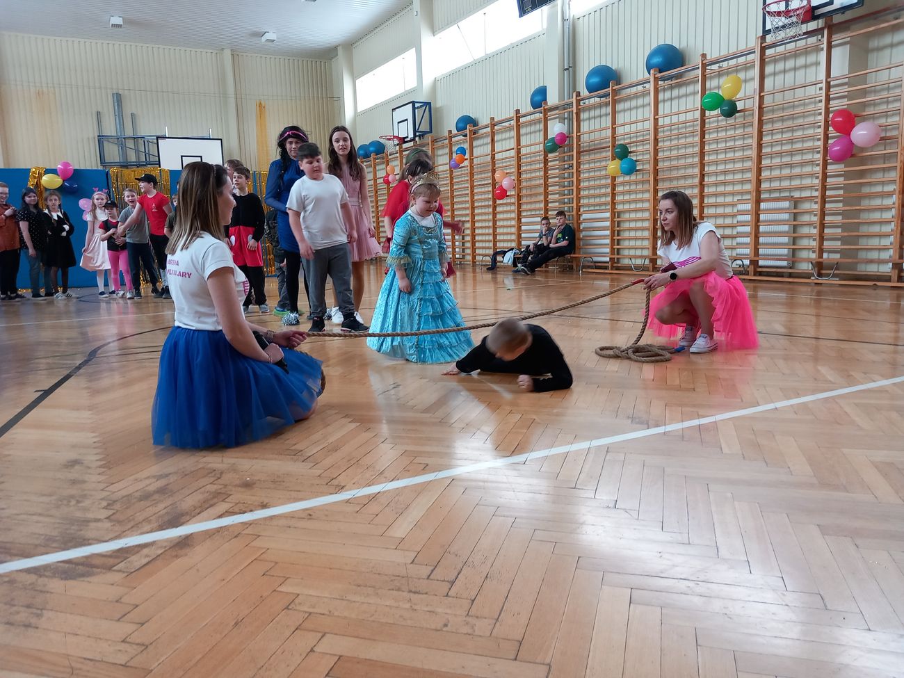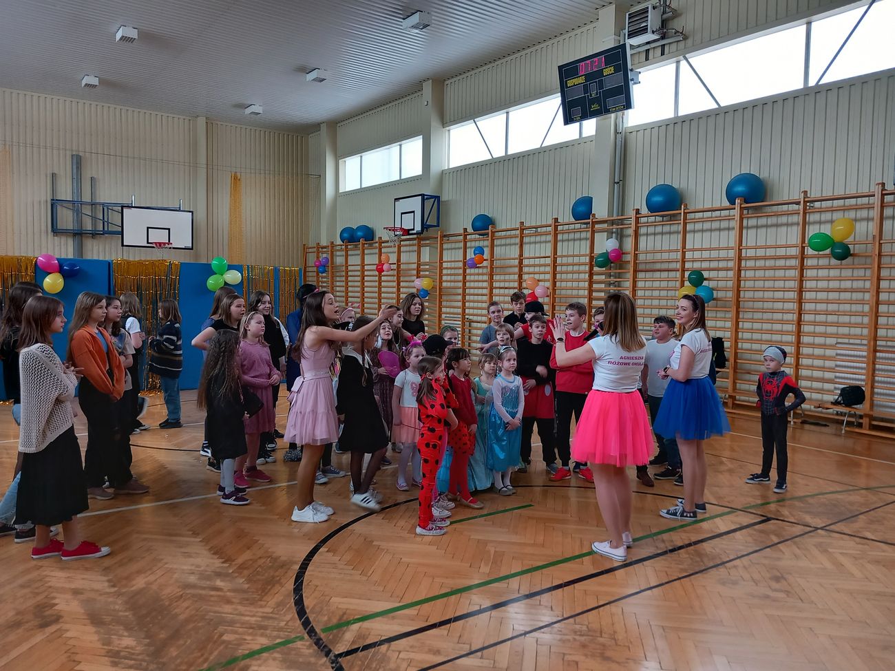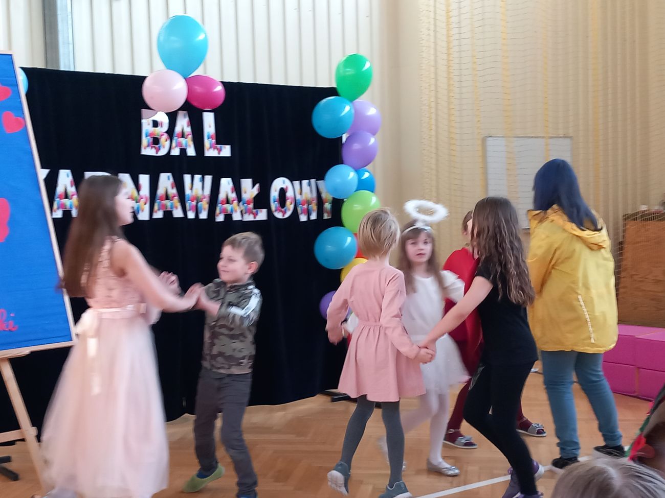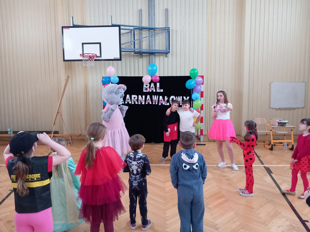 Tego dnia już od rana pojawiały się kolorowe postacie. Dzieci przebrane były za bohaterów znanych bajek. Można było spotkać wróżki, królewny, księżniczki, motylki, rycerzy, piratów, strażaków, policjantów, Spider-Mana... - nie sposób zliczyć i wymienić tych wszystkich postaci. Rozpoznać dzieci było bardzo trudno. Wystrój sali wprowadził w radosny nastrój oraz zachęcał wszystkich do wesołej zabawy.
