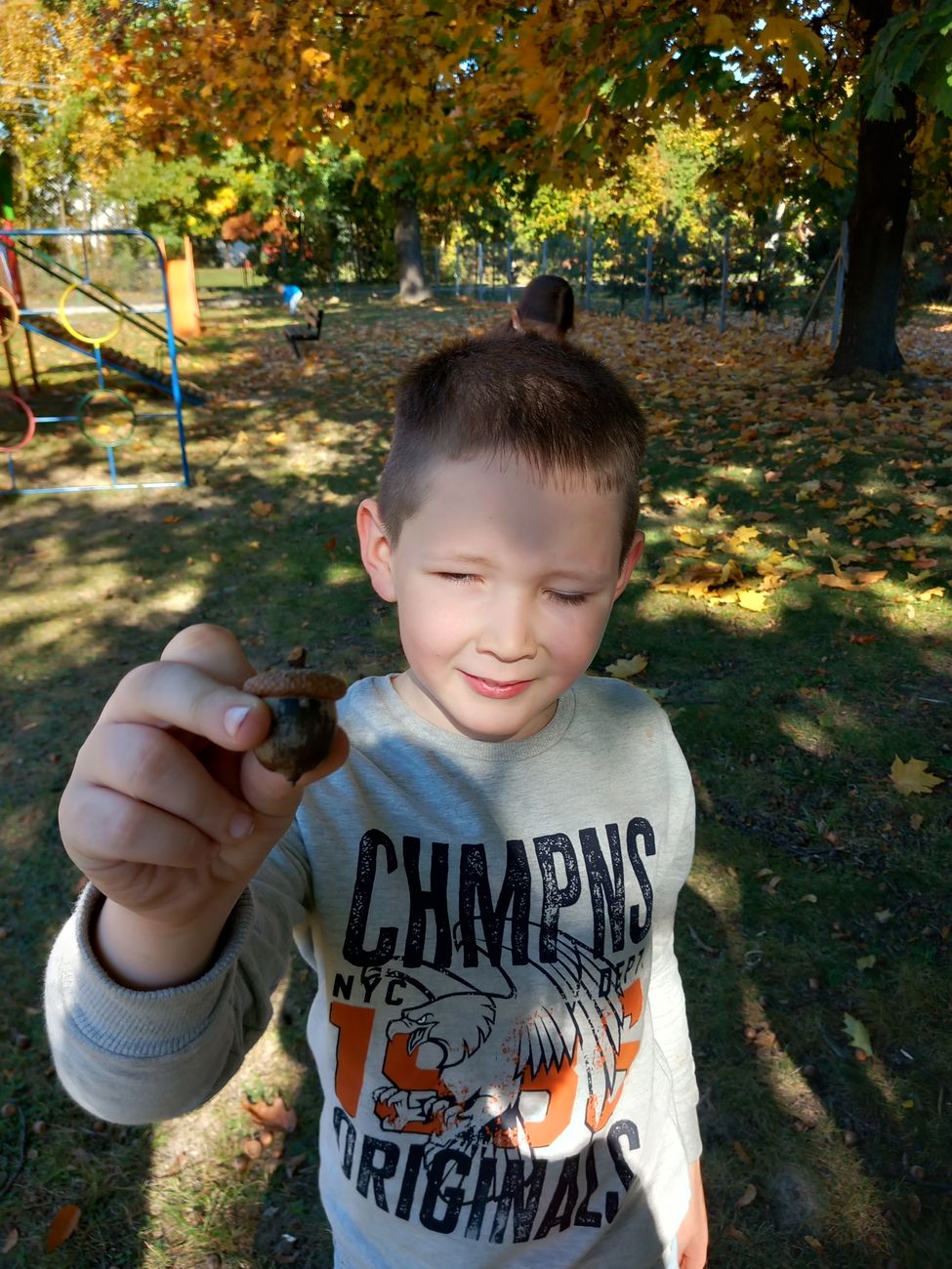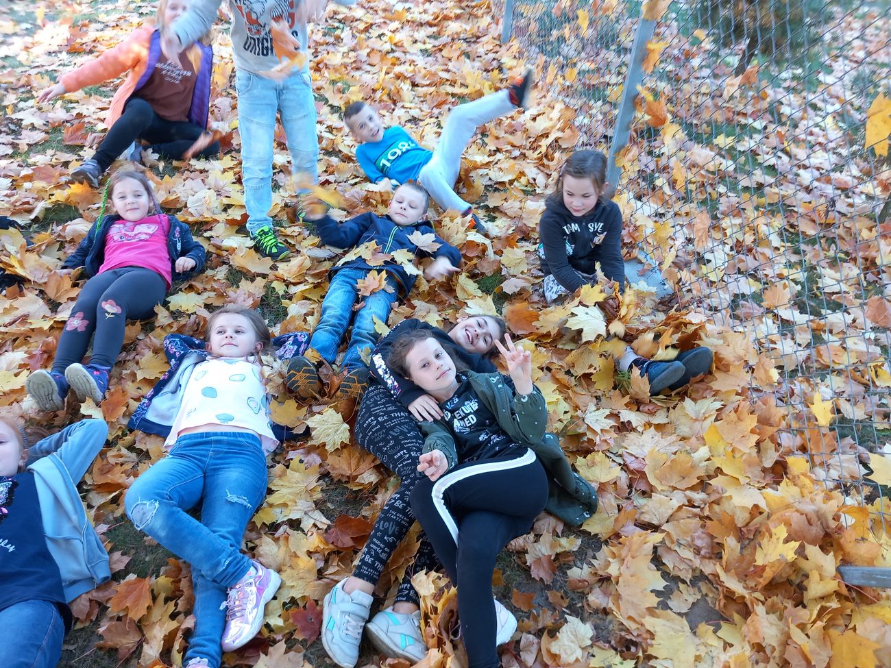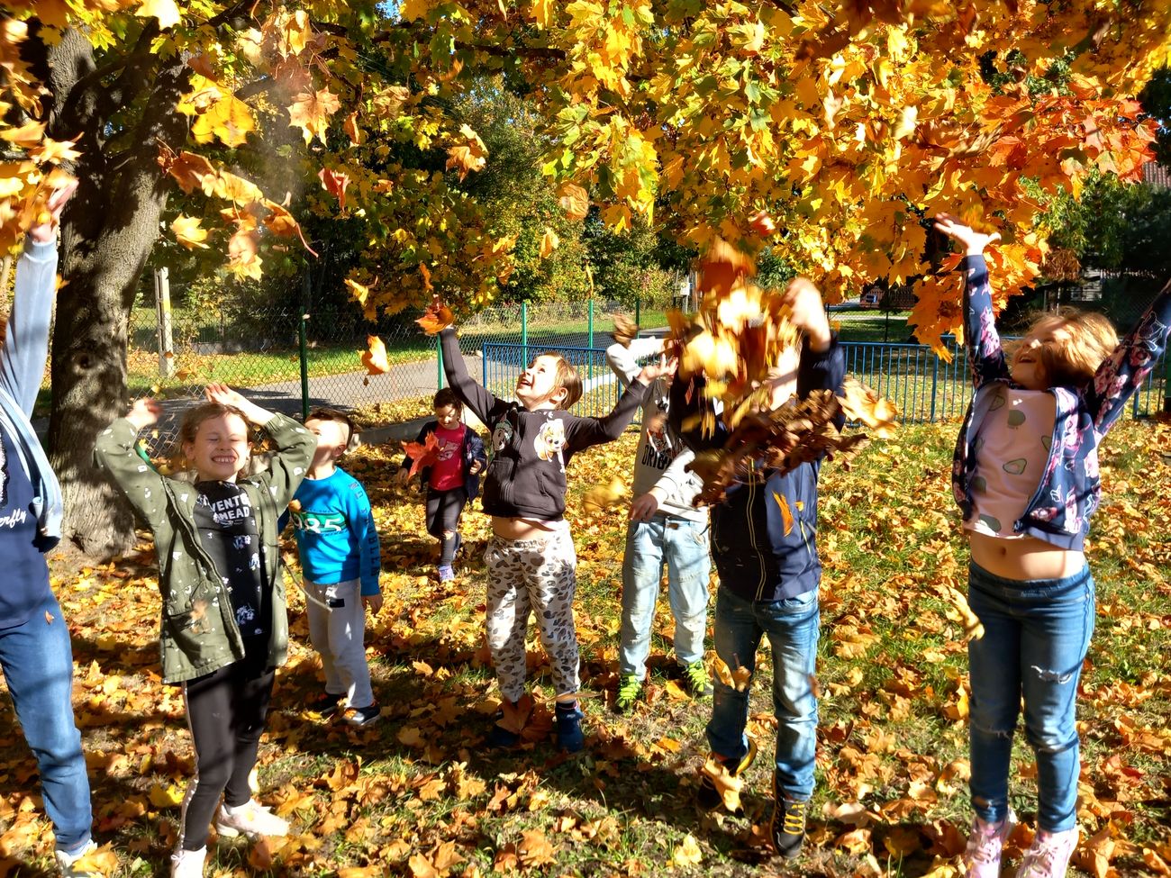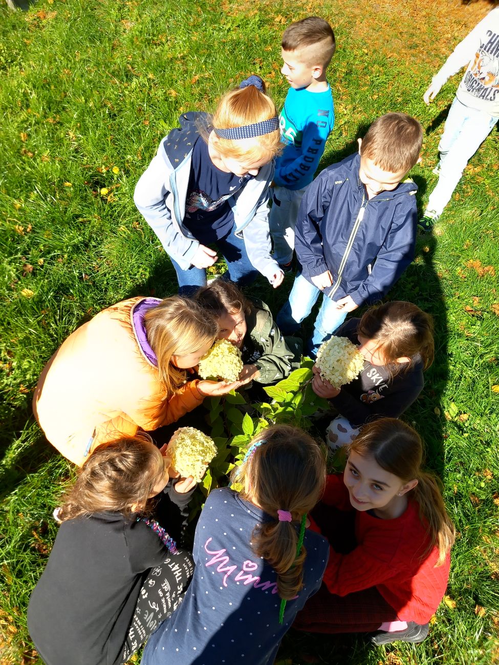 Biorąc udział w projekcie, nauczyciel zobowiązuje się realizować zabawy, zajęcia, bądź tworzyć pomoce dydaktyczne w tematyce danego miesiąca. I tak pierwsze zadanie nasi uczniowie wykonali na piątkę z plusem. Sensoryczny spacer sprawił im mnóstwo radości i zabawy. Piękna pogoda sprzyjała dostrzeganiu uroków jesieni.