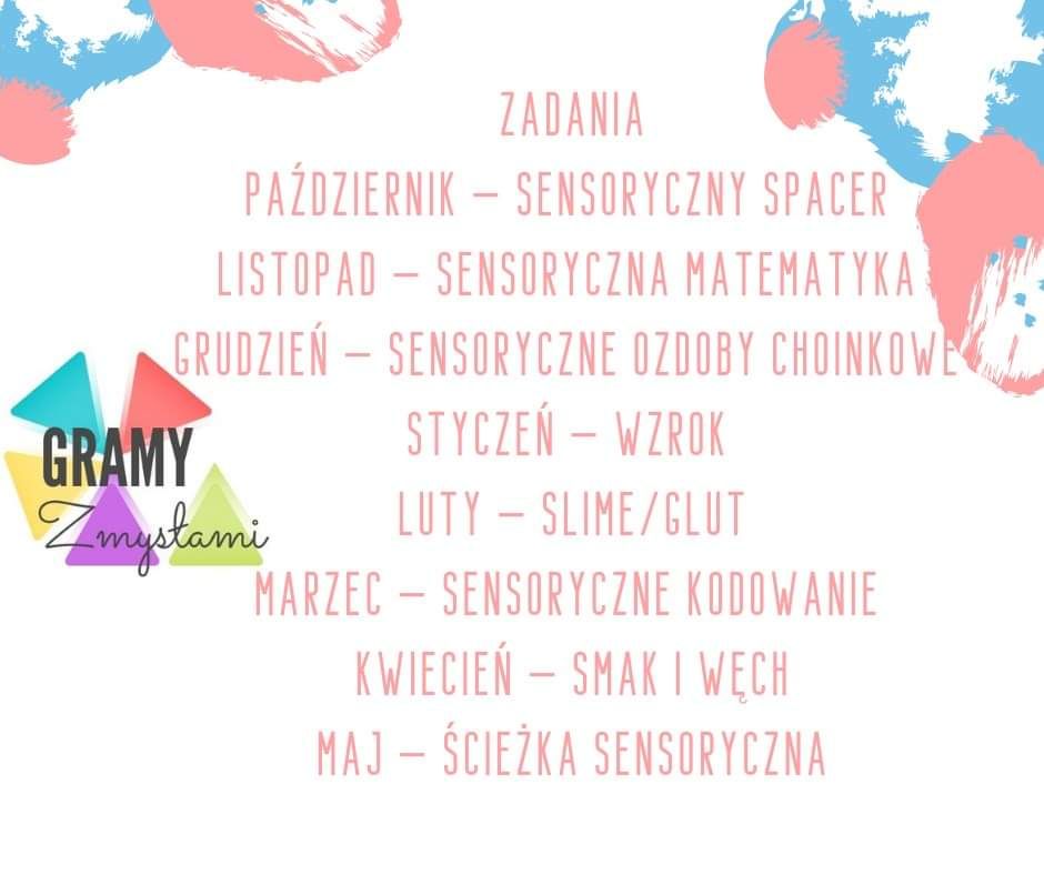 Jest nam niezmiernie miło poinformować, że nasza świetlica szkolna przystąpiła do Ogólnopolskiego Projektu Edukacyjnego „Gramy Zmysłami”, którego głównym cele jest innowacyjne i kreatywne podejście do tematyki rozwijania zmysłów u dzieci. Korzyści płynące z udziału w programie to: wielozmysłowe postrzeganie świata przez dzieci; rozbudzenie kreatywności w realizacji zadań; stymulowanie wszystkich zmysłów w trakcie zabaw i sytuacji edukacyjnych; tworzenie warunków do kształtowania przez dzieci świadomości własnego ciała; współpraca nauczycieli i dzieci na terenie całego kraju poprzez wspólną wymianę doświadczeń.