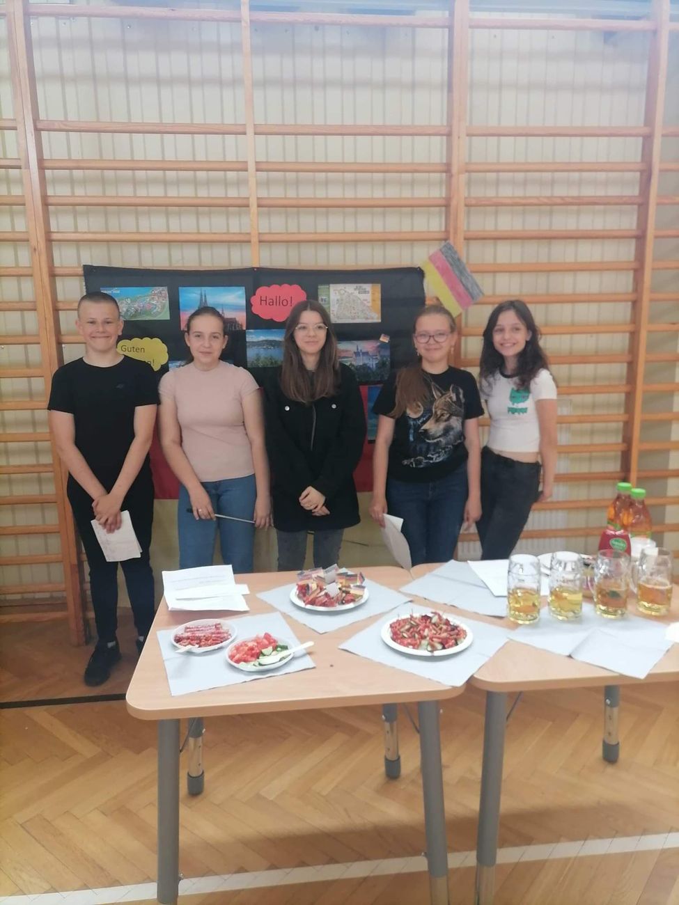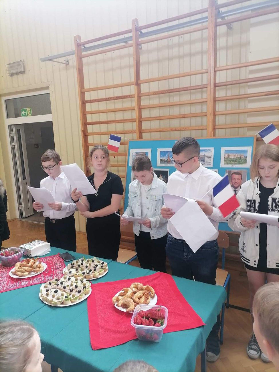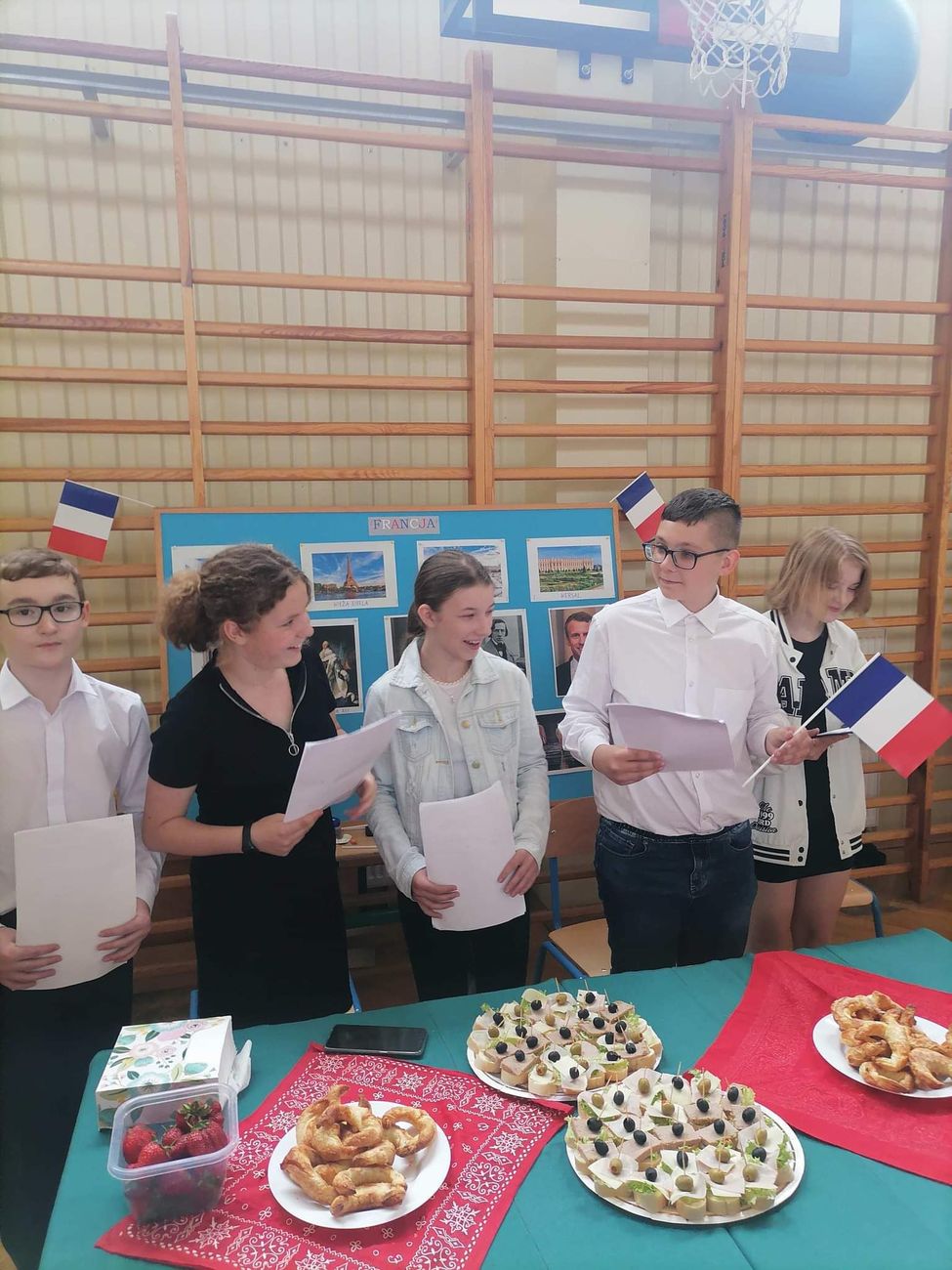 10 czerwca w naszej szkole odbyły się obchody Dnia Europejskiego. Z tej okazji uczniowie klas IV-VIII zaprosili nas do zwiedzenia wylosowanych wcześniej państw europejskich: Hiszpanii, Włoch, Wielkiej Brytanii, Francji oraz Niemiec. Na stoisku każdej z klas można było obejrzeć wystawę, gazetki, pamiątki i mapy danego kraju. Dodatkowo uczniowie przygotowali specjały danej kuchni i tak mogliśmy spróbować między innymi włoskiej pizzy, francuskich croissantów, hiszpańskich churros, hamburgerów z Wielkiej Brytanii oraz niemieckiej kiełbaski. Na zakończenie zorganizowany został quiz dla uczniów klas młodszych sprawdzający wiedzę o poznanych krajach europejskich. Wszyscy uczniowie świetnie się bawili i czekają na obchody Dnia Europejskiego w przyszłym roku!