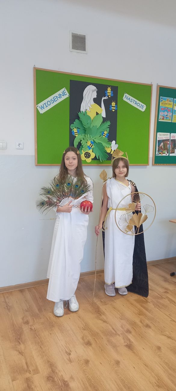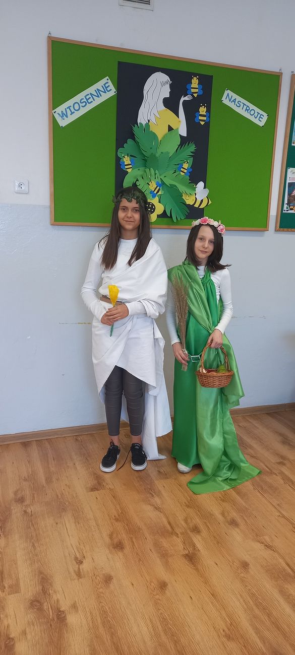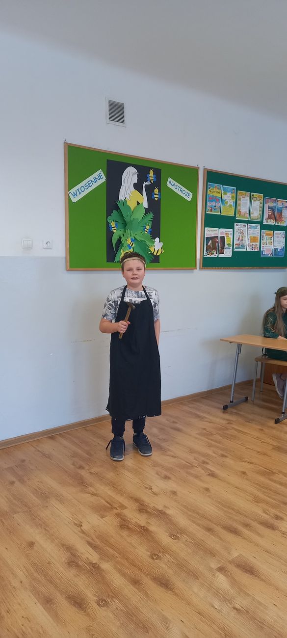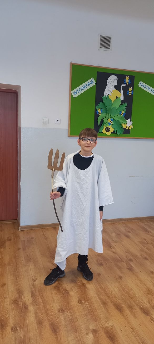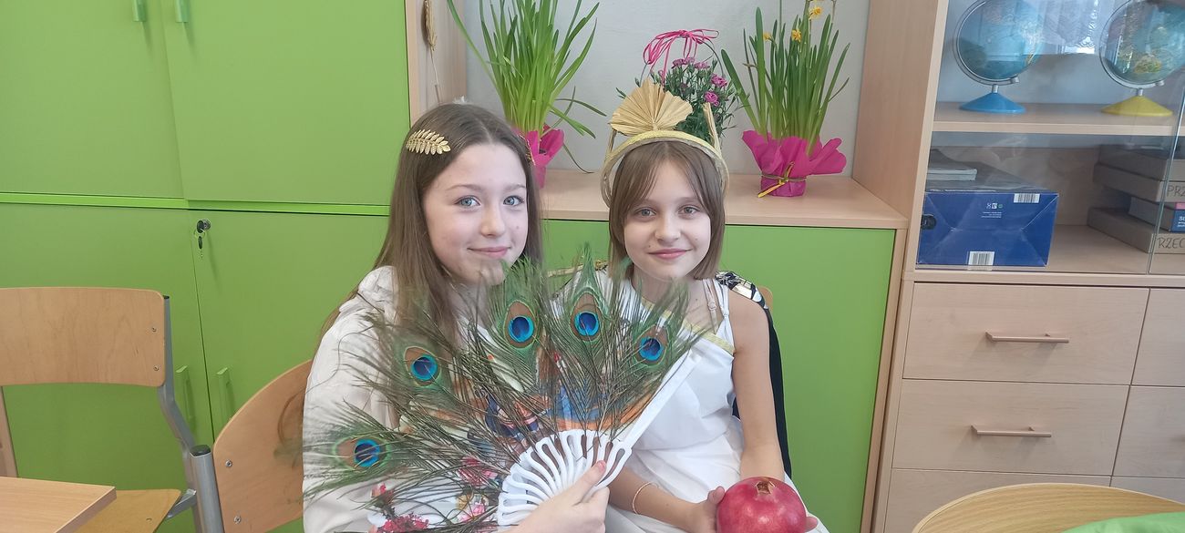 18 marca w klasie V odbyła się niecodzienna lekcja języka polskiego mająca na celu utrwalenie wiedzy uczniów na temat starożytnej Grecji. Zadaniem piątoklasistów było przygotowanie w formie ustnej najciekawszych wiadomości o greckich bogach, przebrań lub atrybutów poszczególnych bogów i przedstawienie ich podczas zajęć. Uczniowie świetnie się zaprezentowali, a nauka poprzez zabawę i teatr wpłynie pozytywnie na zapamiętanie poruszonego tematu.