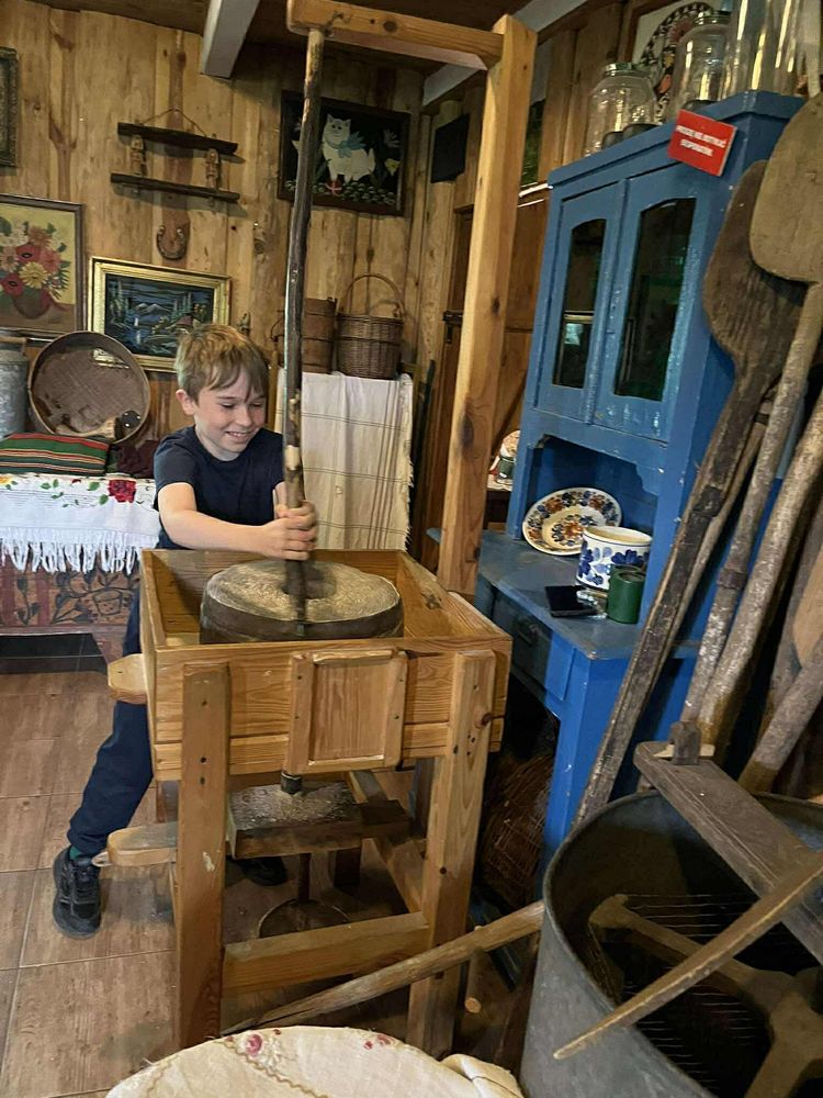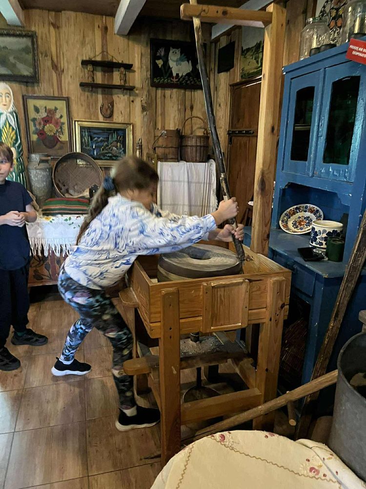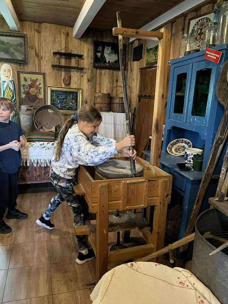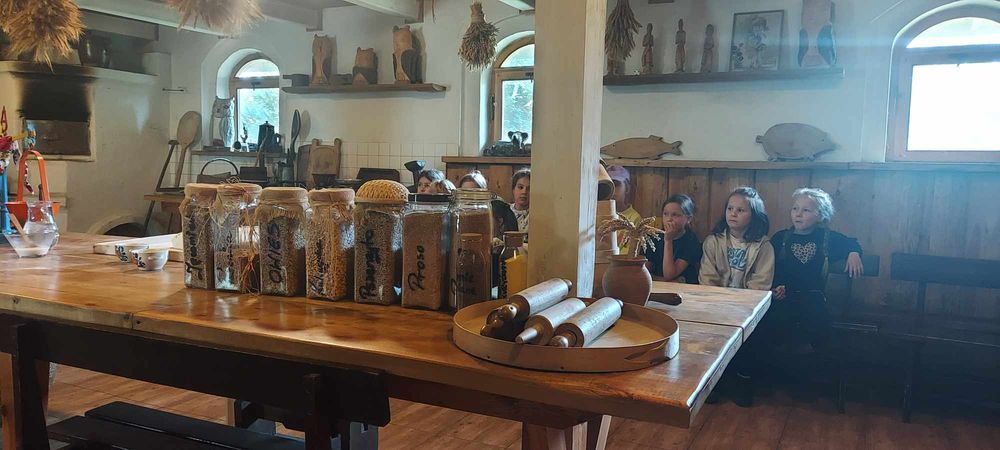 Było zwiedzanie starej wiejskiej zagrody z izbą etnograficzną,