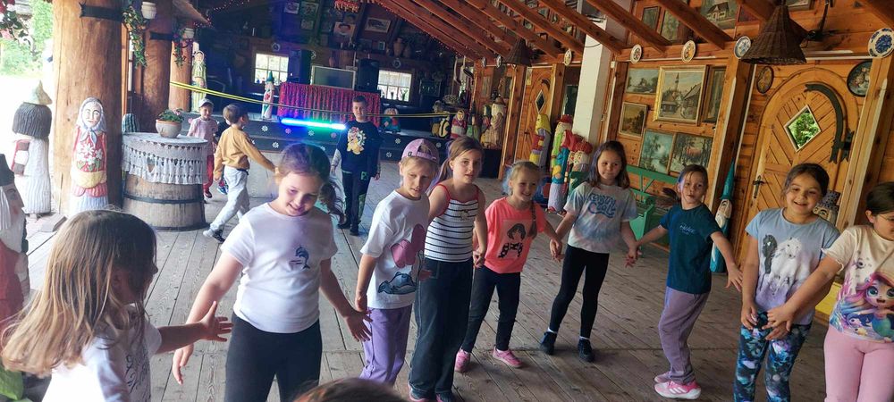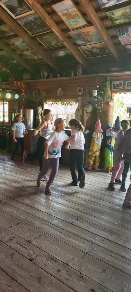 zabawy na boisku i placu zabaw oraz zabawa „deskotekowa” w sali tanecznej.