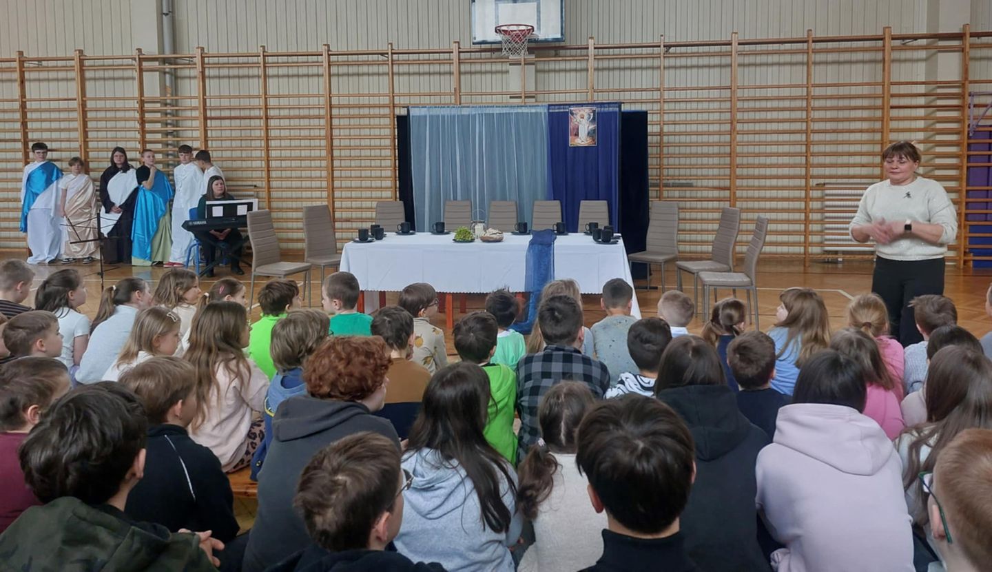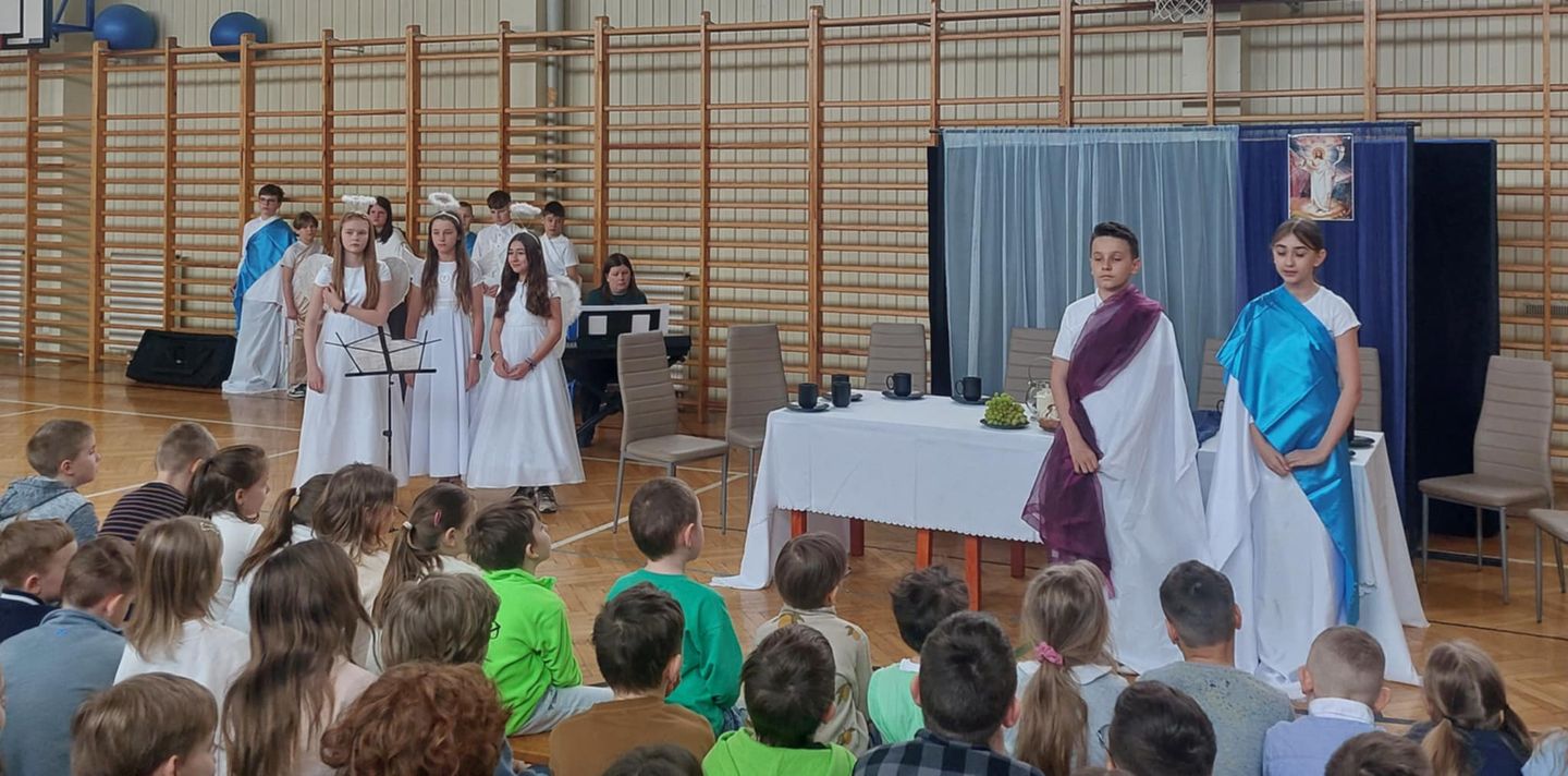 Montaż słowno-muzyczny, przygotowany przez panią Annę Żakowską z uczniami klasy V i VI, wprowadził nas w atmosferę zbliżających się Świąt Wielkanocnych.