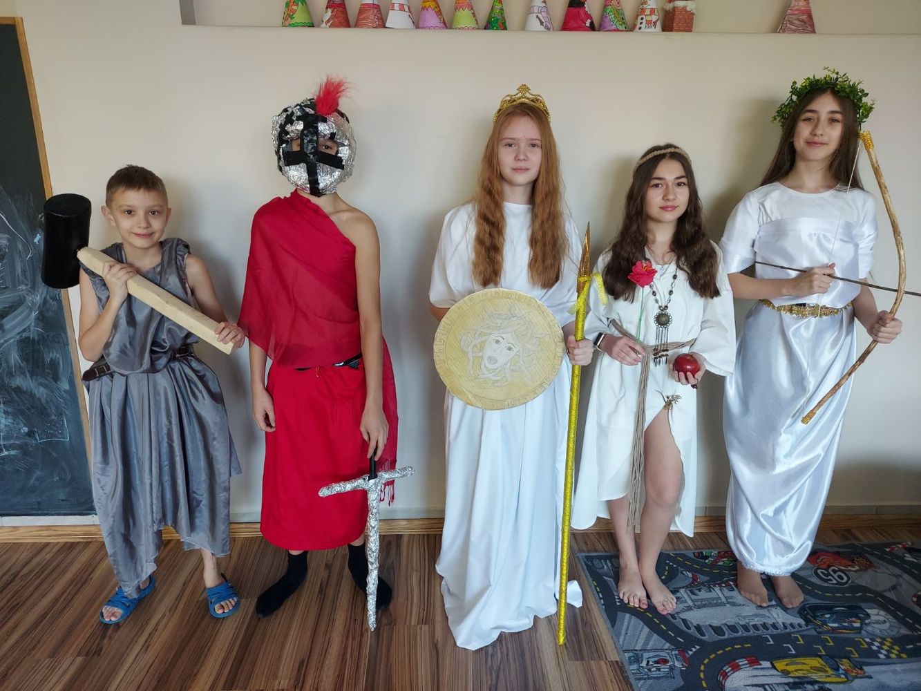 Dnia  5 marca na lekcję języka polskiego w klasie V przybyli bogowie i boginie -  oczywiście uczniowie wcielili się w bohaterów mitologicznych. Zaprezentowali ich losy oraz stroje i atrybuty samodzielnie wykonane. Liczył się pomysł, kreatywność i zaangażowanie. Z całą pewnością to dobry sposób na  naukę i zabawę.