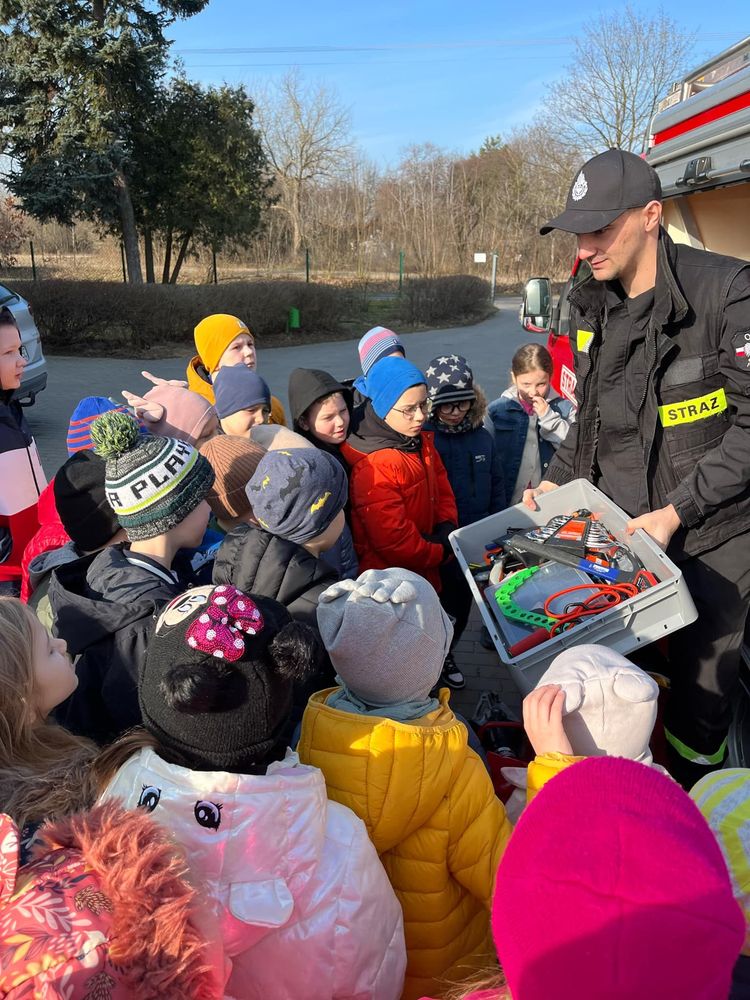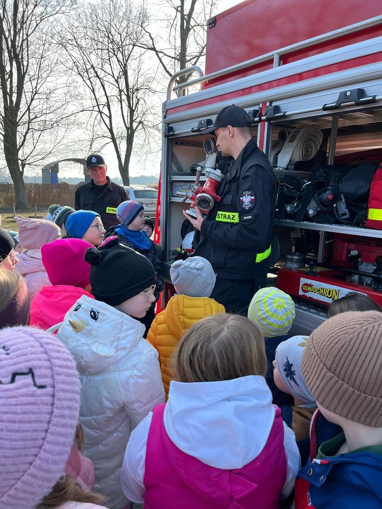 Dnia 7 marca gościliśmy strażaków z Ochotniczej Straży Pożarnej w Feliksowie. Panowie przybliżyli przedszkolakom i uczniom klas I - III specyfikę pracy straży pożarnej, jednocześnie prezentując strój i podręczny sprzęt. W trakcie spotkania dzieci dowiedziały się, że praca strażaka nie polega tylko na gaszeniu pożarów, ale również na udzieleniu pomocy podczas wypadków samochodowych oraz asyście podczas różnych akcji. Dzieci zostały zapoznane z sytuacjami, w których należy wezwać straż pożarną, z zasadami prawidłowego zachowania się podczas pożaru oraz podana została informacja o numerach alarmowych do straży, policji i na pogotowie. Uczniowie mogli z bliska podziwiać wóz strażacki oraz wyposażenie, jakim dysponują strażacy podczas swojej ciężkiej i odpowiedzialnej pracy. Wizyta strażaków utrwaliła wiedzę uczniów w zakresie bezpieczeństwa oraz zachęciła najmłodszych do służby w straży pożarnej.