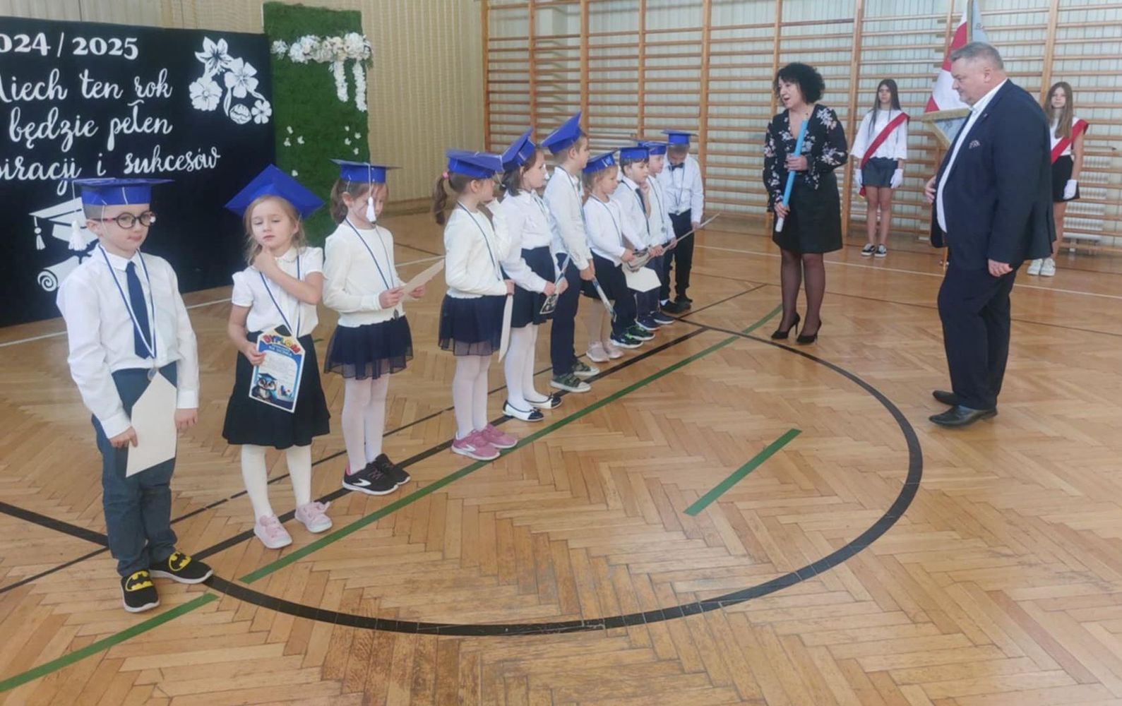 Pierwszoklasiści ze Szkoły Podstawowej w Wymysłowie są już pełnoprawnymi uczniami. 18 października 2024r. odbyło się uroczyste pasowanie na ucznia. To był wyjątkowy dzień, gdyż świętowaliśmy również Dzień Edukacji Narodowej. Na uroczystość przybyli wyjątkowi goście: