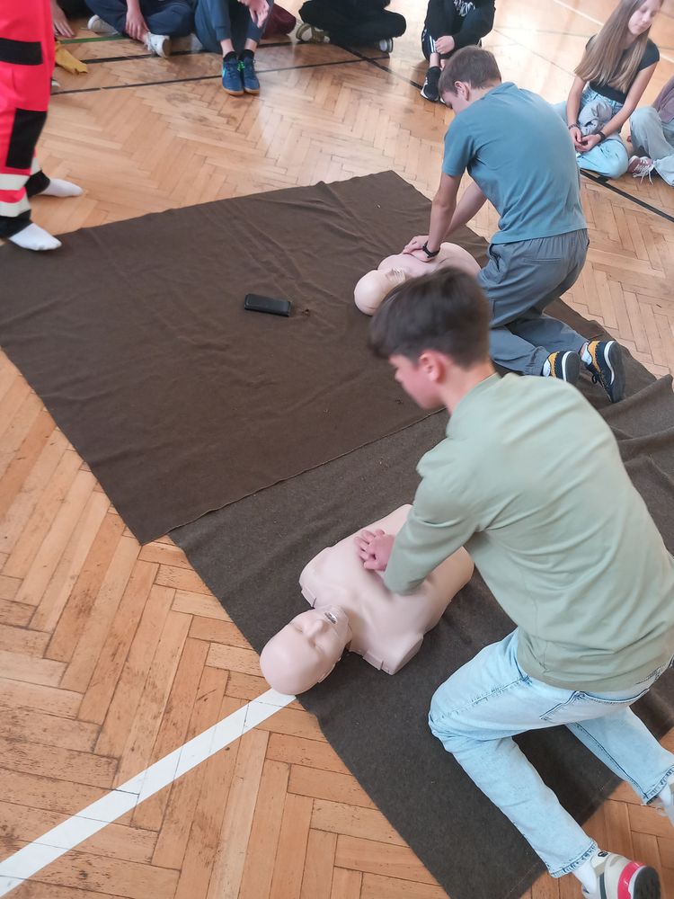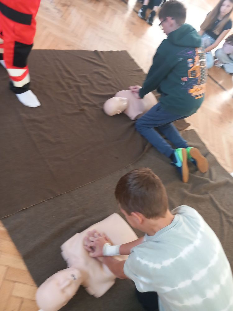 W dniu dzisiejszym, uczniowie naszej szkoły mieli okazję wziąć udział w szkoleniu z zakresu pierwszej pomocy przedmedycznej. Zajęcia zostały poprowadzone przez panią Beatę Romańczuk i pana Marcina Tarnowskiego, przedstawicieli Klubu Honorowych Dawców Krwi Ziemi Sochaczewskiej. Uczyliśmy się, jak prawidłowo wykonywać resuscytację krążeniowo-oddechową, dowiedzieliśmy się, co to jest pozycja boczna bezpieczna, a także jak ratować osobę, która się zadławiła. Serdecznie dziękujemy za poświęcony czas, ale przede wszystkim za przekazanie cennej wiedzy.
