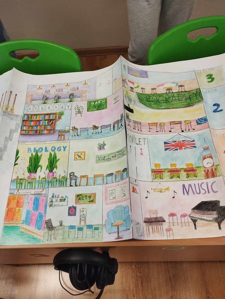 Uczniowie mieli za zadanie stworzyć pracę przedstawiającą ich wymarzoną szkołę. Podzieleni na grupy przygotowywali swoje prace, które zaprezentowali na lekcji języka angielskiego. Pomysły oraz realizacja zaskoczyły kolegów i koleżanki z klasy.
