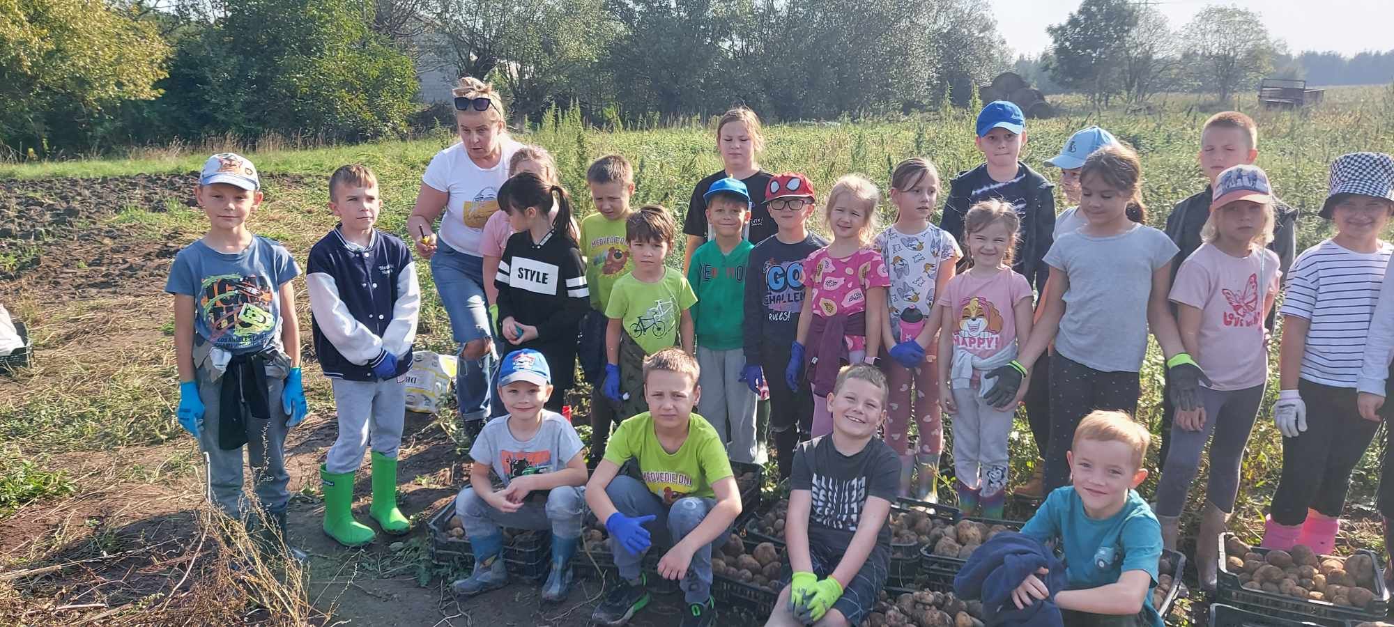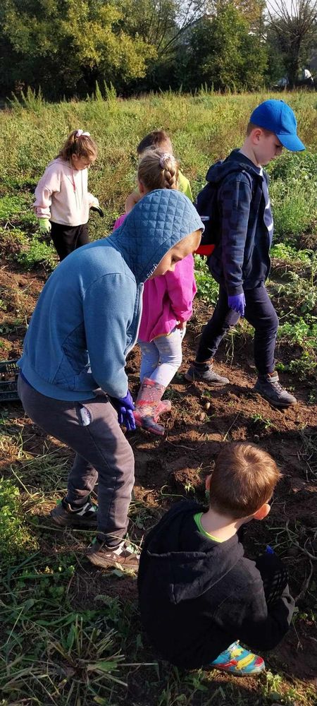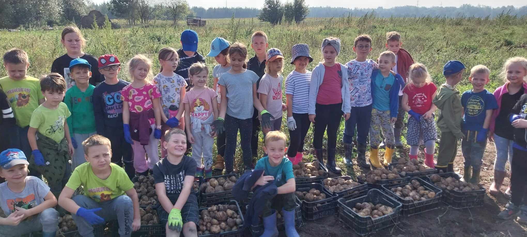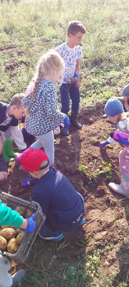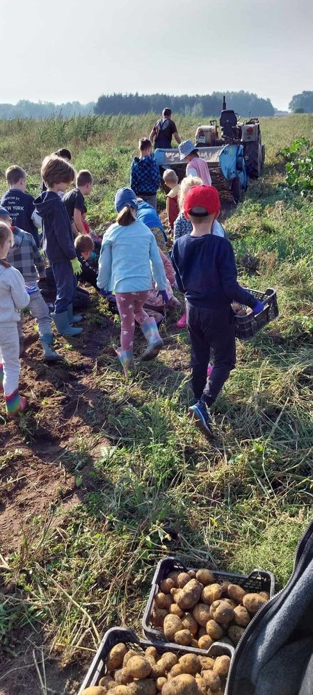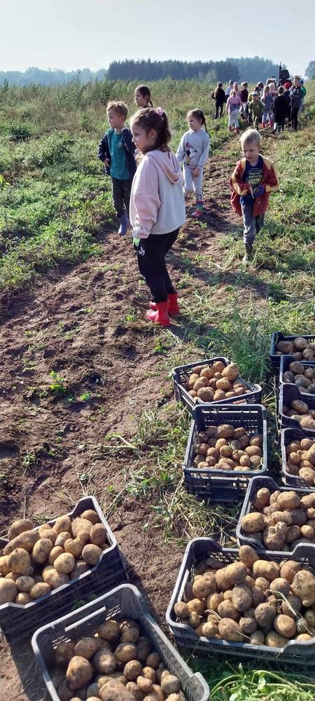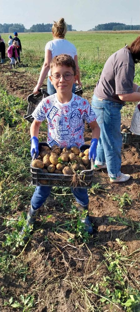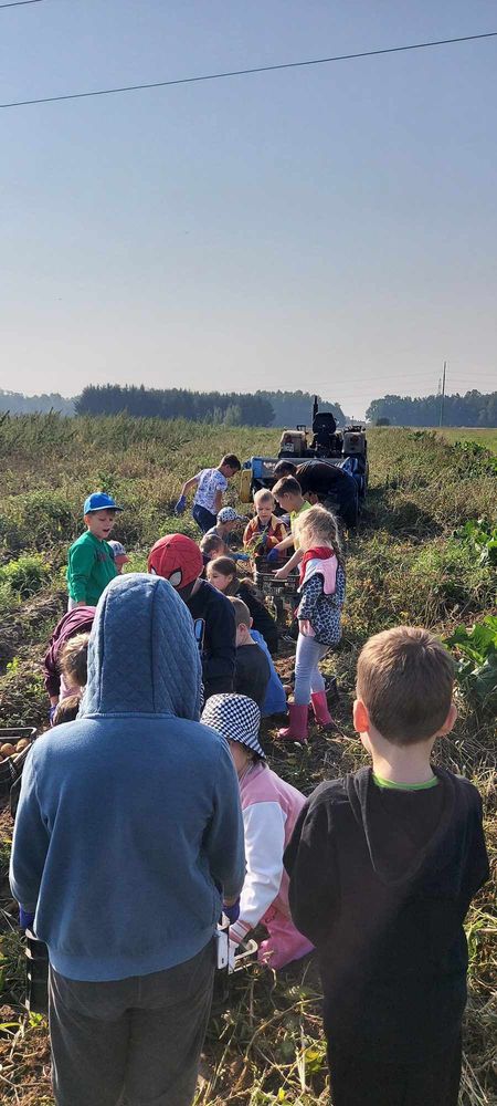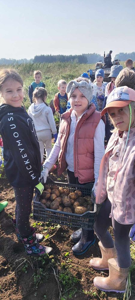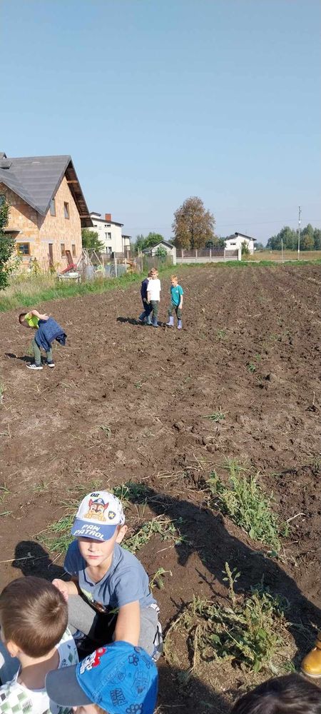 W słoneczny poranek 17.09.2024 r. dzieci z klas 0-III obchodziły Dzień Ziemniaka, wybierając się na pole.