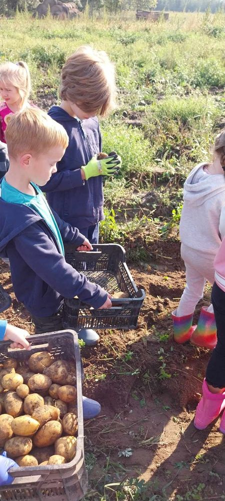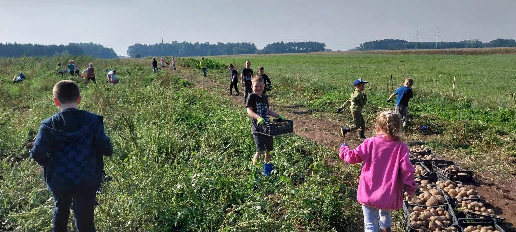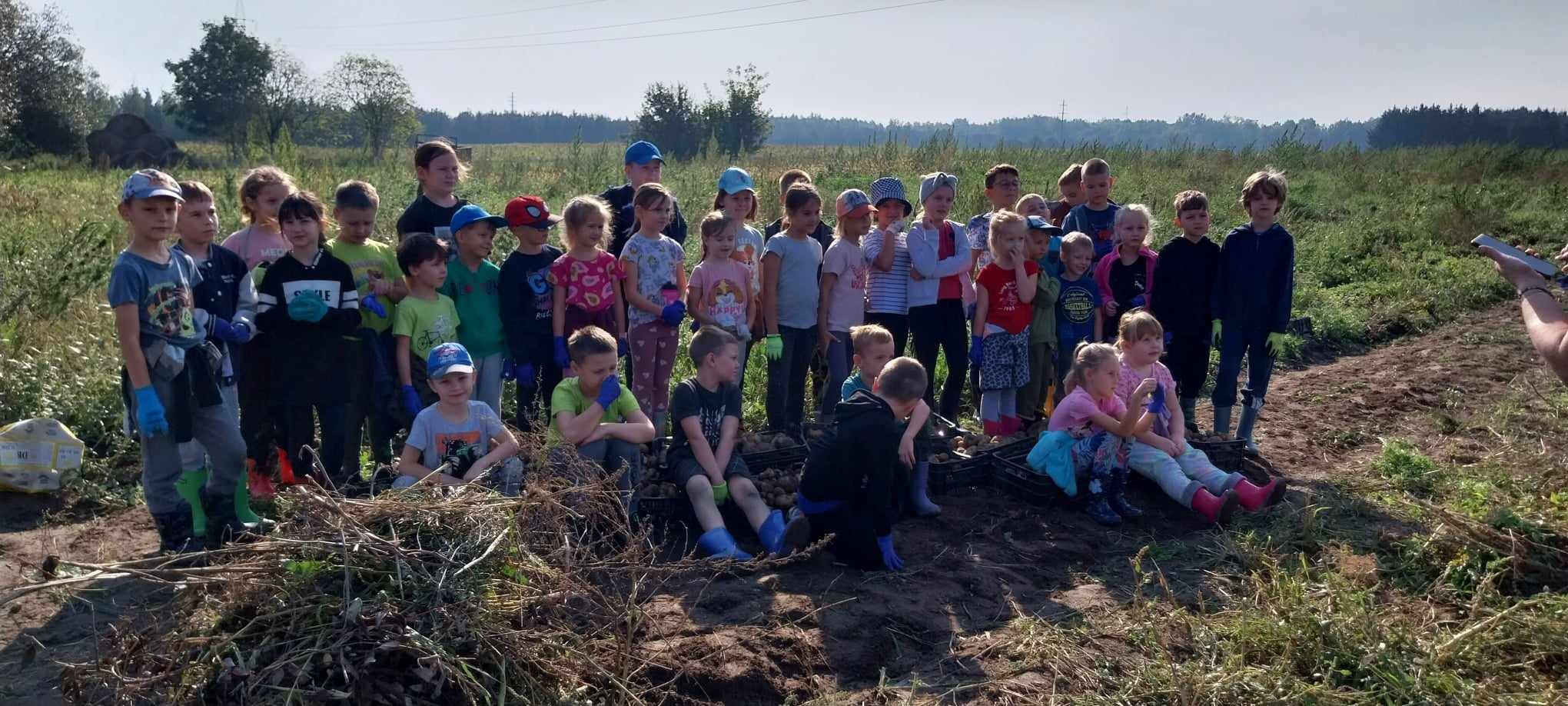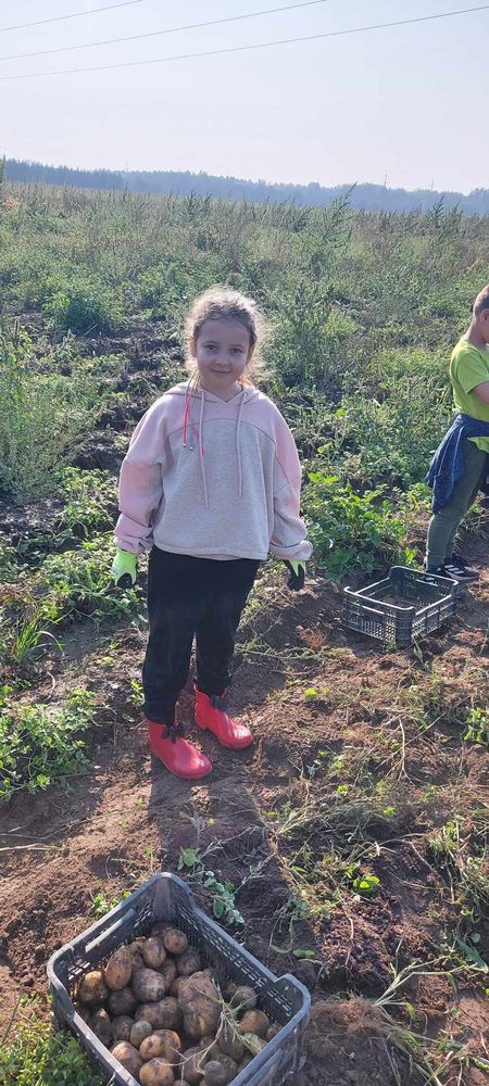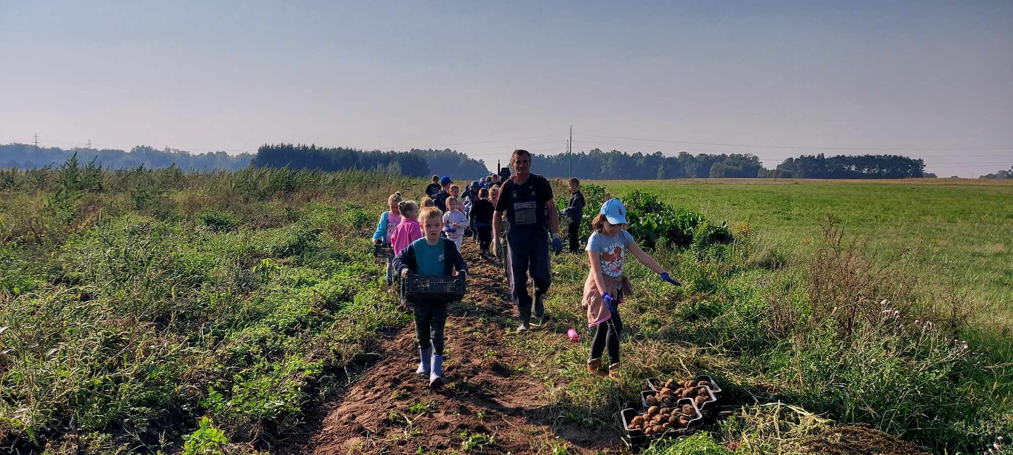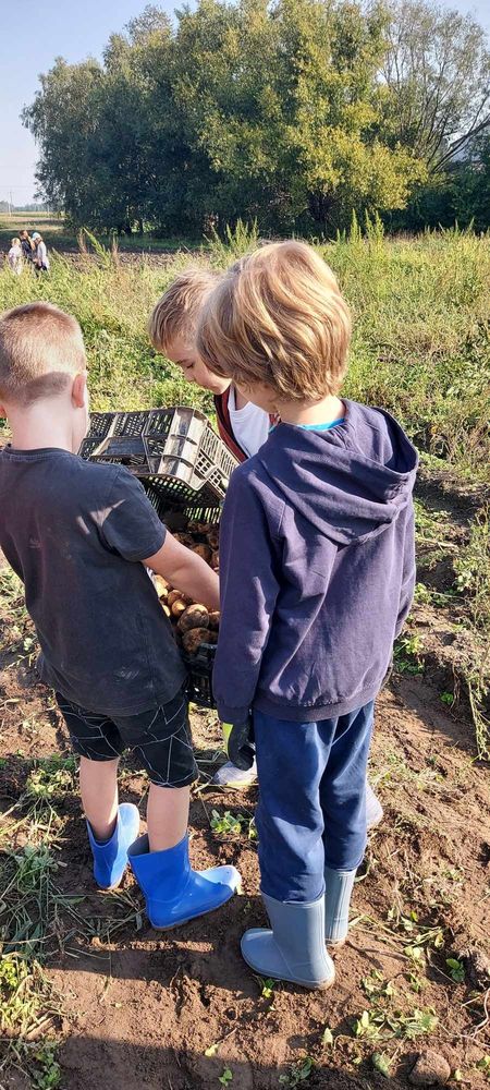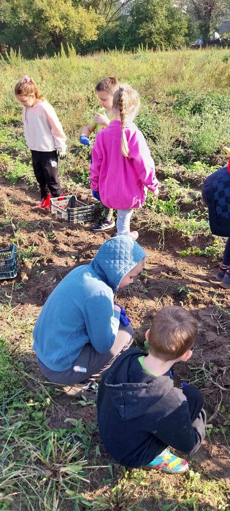 W słoneczny poranek 17.09.2024 r. dzieci z klas 0-III obchodziły Dzień Ziemniaka, wybierając się na pole.