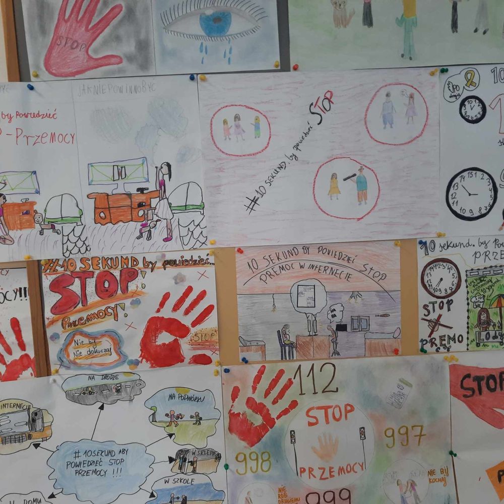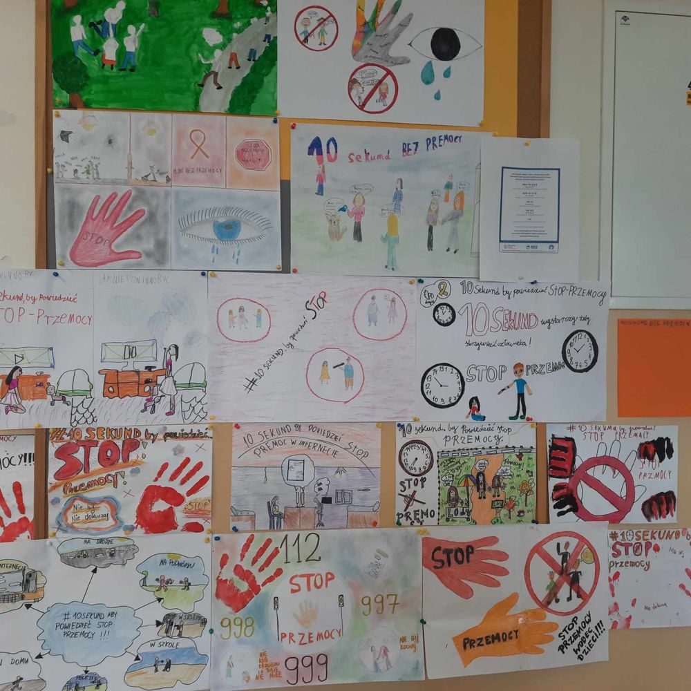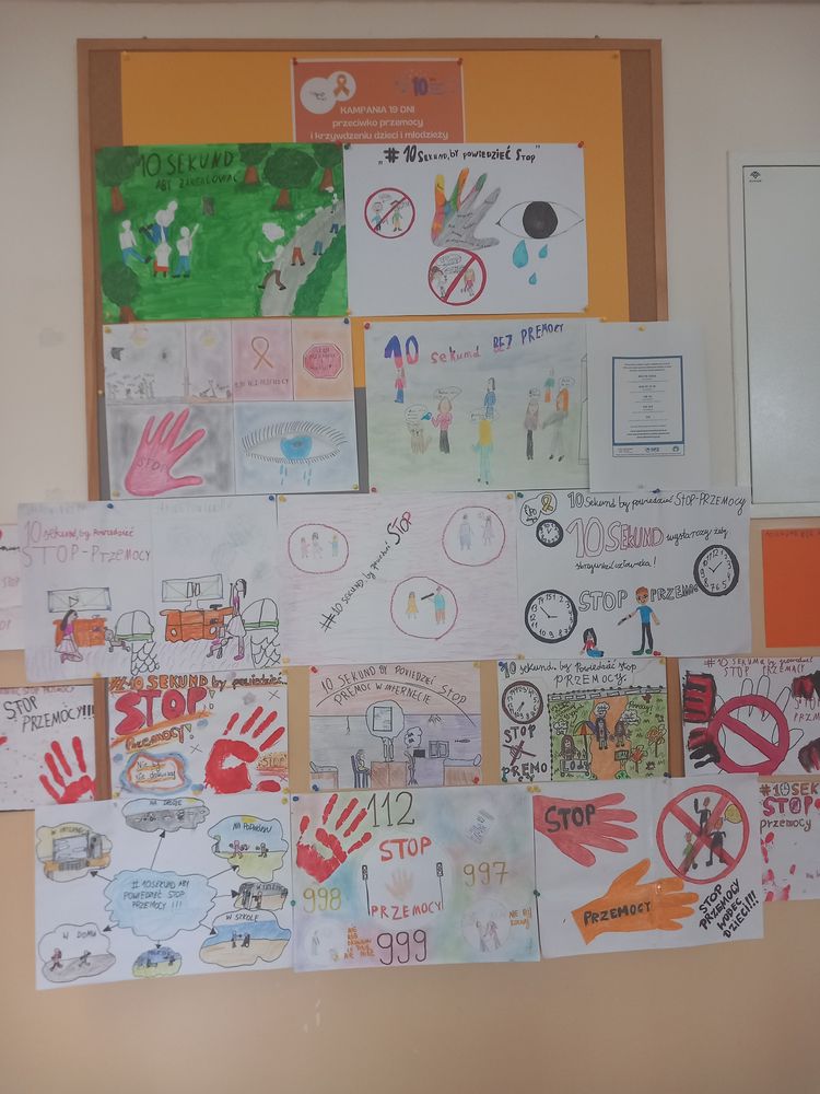 W ramach udziału w Kampanii 19 Dni przeciwko przemocy i krzywdzeniu dzieci i młodzieży podjęliśmy różnorodne działania mające na celu: uświadomienie problemu , zapobieganie zjawisku, jak również przekazanie wiedzy gdzie szukać pomocy dla osób doświadczających przemocy. Powstała szkolna gazetka informacyjna. Każda klasa miała za zadanie wykonać plakat o przeciwdziałaniu przemocy. Psycholog, pedagog i wychowawcy klas na godzinach wychowawczych przeprowadzili zajęcia profilaktyczne, realizowali tematykę wynikającą z założeń Kampanii. Mówiono o prawach dziecka, godności, szacunku i bezpieczeństwie. 14-tego listopada w szkole zorganizowano " Dzień na pomarańczowo".
