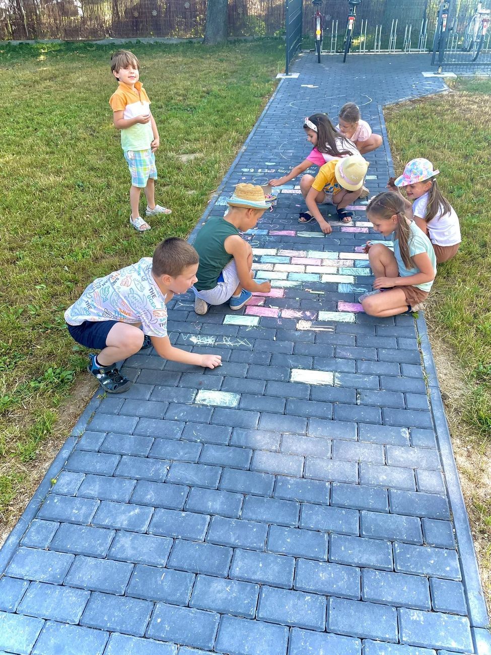 W ostatnim dniu nauki przed szkołą rozbrzmiewała muzyka i śmiech. Uczniowie klas 0, 1 i 2 żegnali się w bardzo wesołym nastroju. Nikt nie zapomniał o dobrym humorze. Rodzice przygotowali poczęstunek: owoce, słodycze, napoje. Były nawet lody! Wychowawczynie zadbały o różne atrakcje: tańce, zabawy ruchowe, gry planszowe, rysowanie kolorową kredą na chodniku. Dla każdego coś dobrego. Jutro rozdanie świadectw i zasłużone WAKACJE!