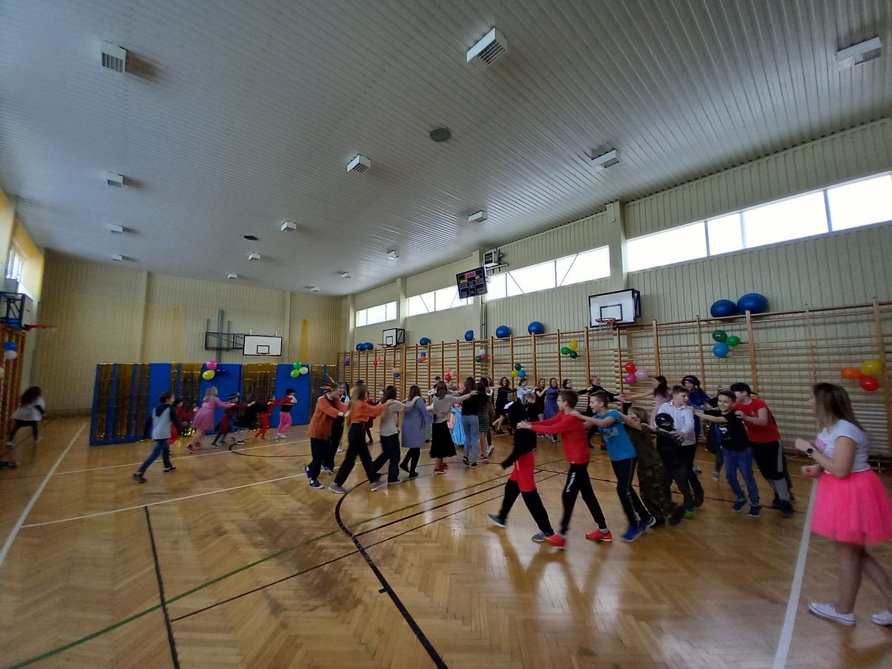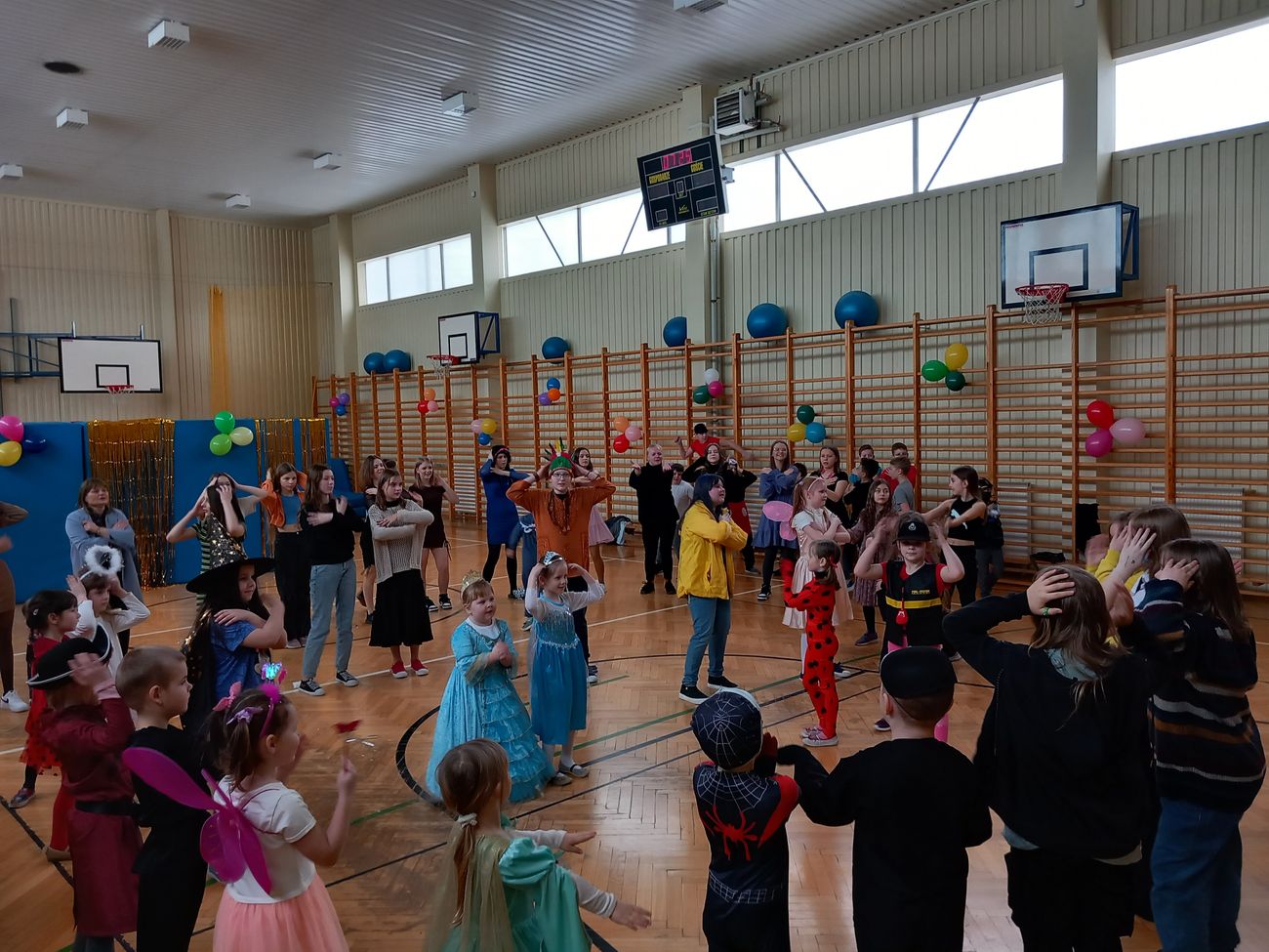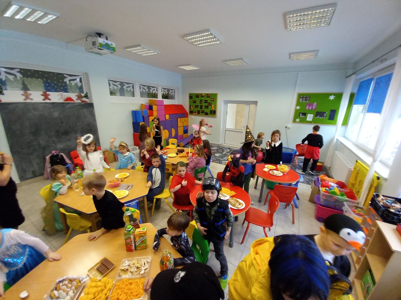 Tego dnia już od rana pojawiały się kolorowe postacie. Dzieci przebrane były za bohaterów znanych bajek. Można było spotkać wróżki, królewny, księżniczki, motylki, rycerzy, piratów, strażaków, policjantów, Spider-Mana... - nie sposób zliczyć i wymienić tych wszystkich postaci. Rozpoznać dzieci było bardzo trudno. Wystrój sali wprowadził w radosny nastrój oraz zachęcał wszystkich do wesołej zabawy.