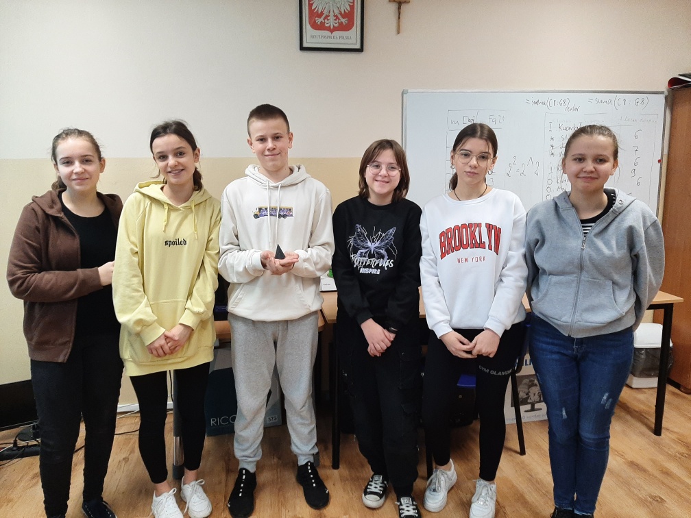 Na jednej z lekcji matematyki, uczniowie klasy ósmej, wykonywali model ostrosłupa sześciennego za pomocą drukarki 3D. Wykorzystywanie nowoczesnej technologii urozmaica typowe lekcje tworząc je ciekawszymi. Co pozwala na rozwijanie umiejętności i rozbudzanie wyobraźni młodego człowieka. Projektowanie i wykonywanie pomocy edukacyjnych wpływa na kreatywność naszych uczniów.