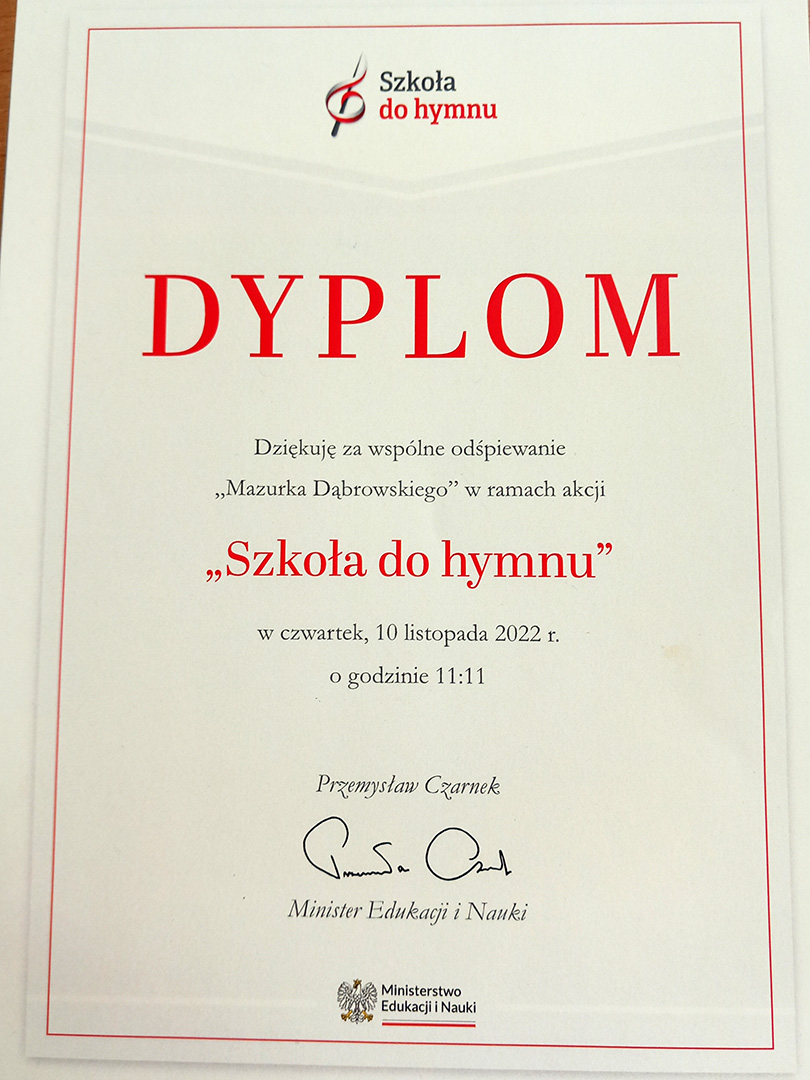 W związku z Narodowym Świętem Niepodległości nasza szkoła,jak co roku,włączyła się w ogólnopolską akcję pt. „Szkoła do hymnu”, zorganizowaną przez Ministerstwo Edukacji i Nauki.