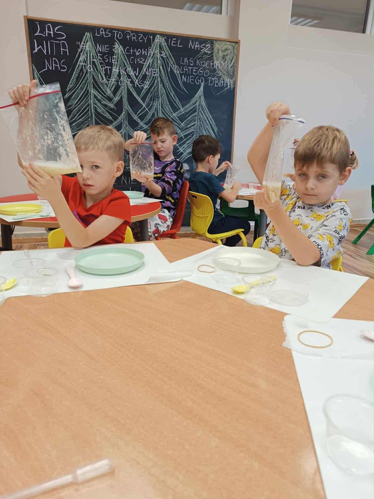 Zajęcia wzbudziły ogromne zainteresowanie i wiele radości. Dzieci z zachwytem obserwowały, jak z prostych składników i odrobiny cierpliwości można zobaczyć coś tak niezwykłego!