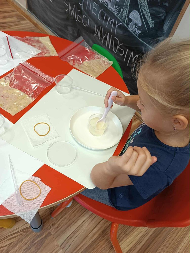 Dzieci z naszej zerówki wzięły udział w niezwykle ciekawych warsztatach naukowych z Laborek. Mali odkrywcy mieli okazję zamienić się w prawdziwych naukowców i samodzielnie przeprowadzić bardzo trudne doświadczenie – wyilozowanie DNA z banana! 🍌🔬