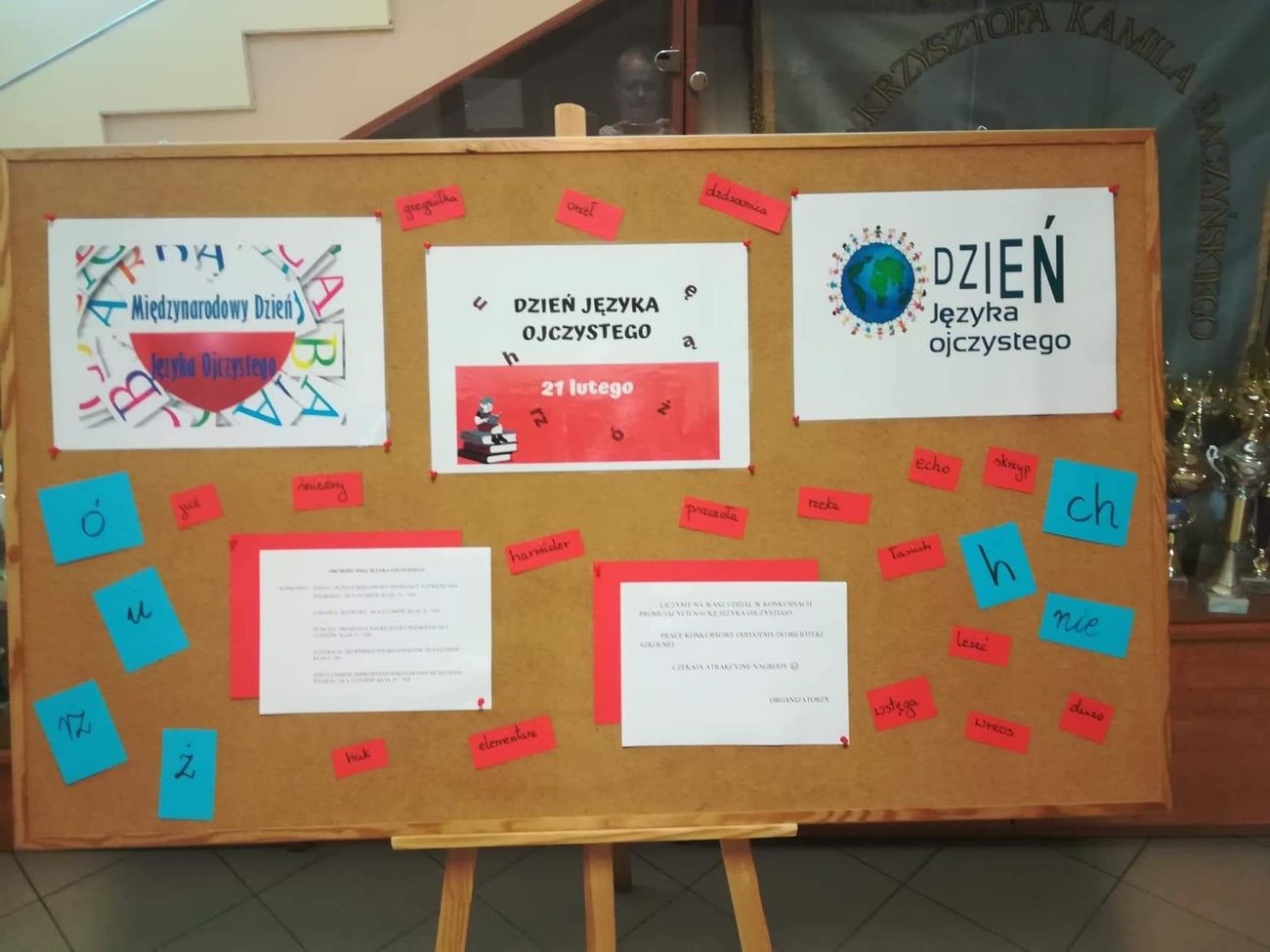 Wzięli udział w konkursach promującym znajomość języka w mowie i piśmie. Uczniowie przygotowali plakaty, hasła reklamujące piękno języka ojczystego oraz ilustracje do wierszy polskich poetów. Wszystkie prace plastyczne zostały nagrodzone, a uczestnicy otrzymali upominki. Uczniowie klas IV – VIII pisali test ze znajomości zasad ortograficznych i poprawnego stosowania wypowiedzi gramatycznych.